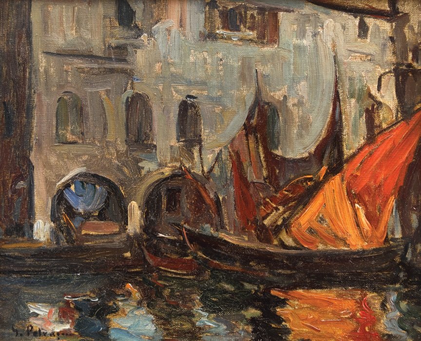 Around 1924, artist Petrașcu's activity is in full ascension. He is present at the Venice Biennale with ten works of art, as well as at the Official Salon and Artistic Youth exhibitions. He travels to Italy, where he paints in Venice, Chioggia and Padua, then to France, in Vitré, as well as within Romania, in Târgoviște and Viforâta. What will result from his 1924 Venetian journey will be a series of works illustrating not only the Venetian picturesque, but also the steadiest and most poignant features of his creation. These paintings, defined by the monumental characteristics, as well as by the inclination towards a cool tones art, will place the artist amongst the most fervent painters of Venice.