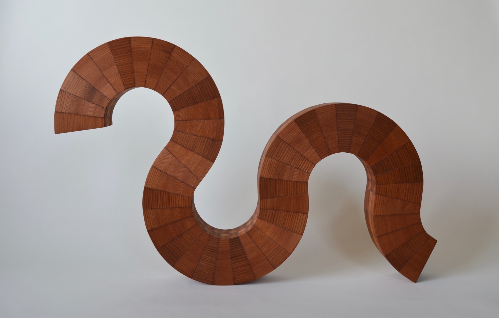 This one is made from 192 wedged pieces of reclaimed redwood. Laminated, carved and lots of sanding. Finished with linseed oil.