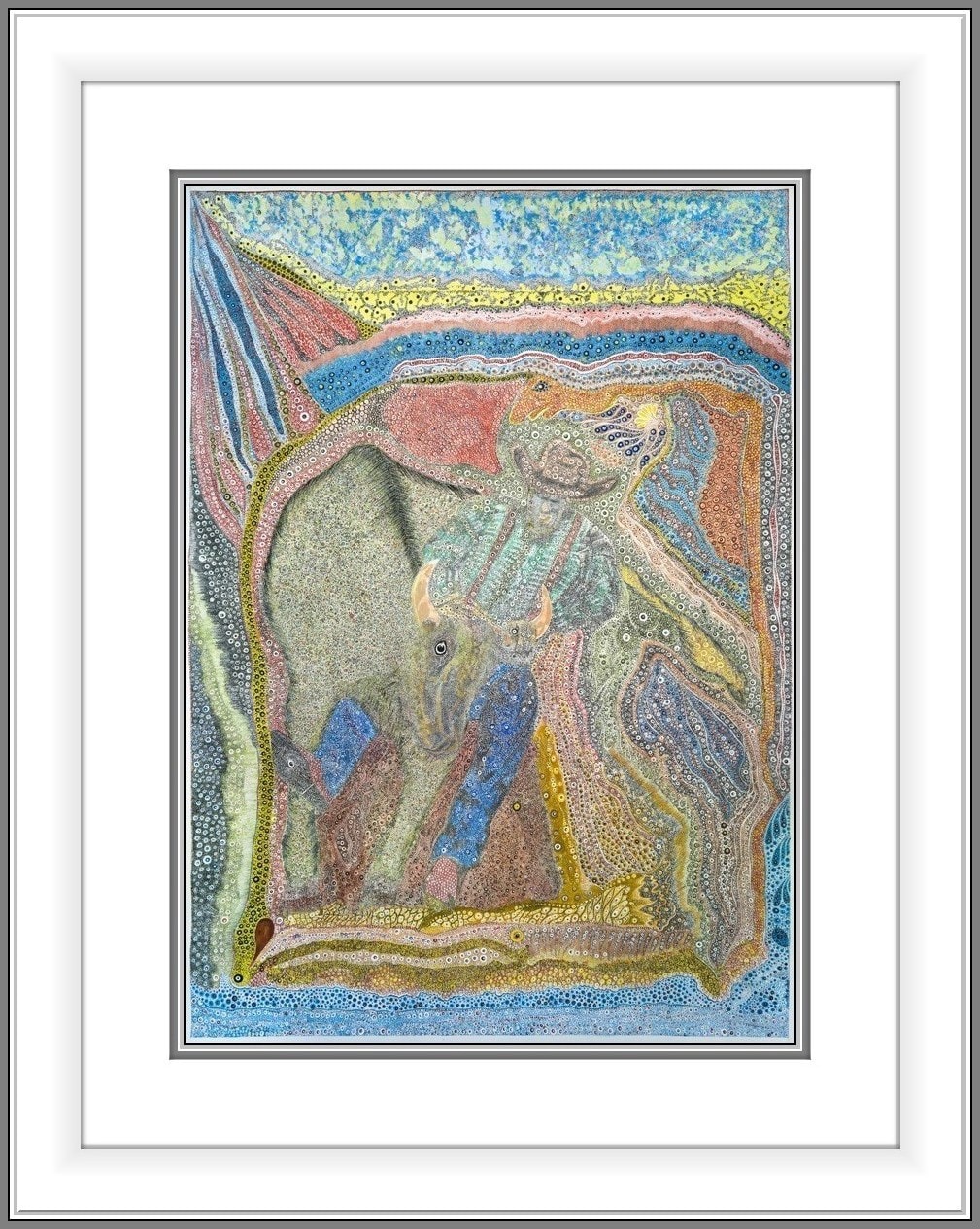The artist has given this artwork its name. Beyond that he would like to invite the viewer to take the painting on a trip into their inner self and draw their own conclusions.