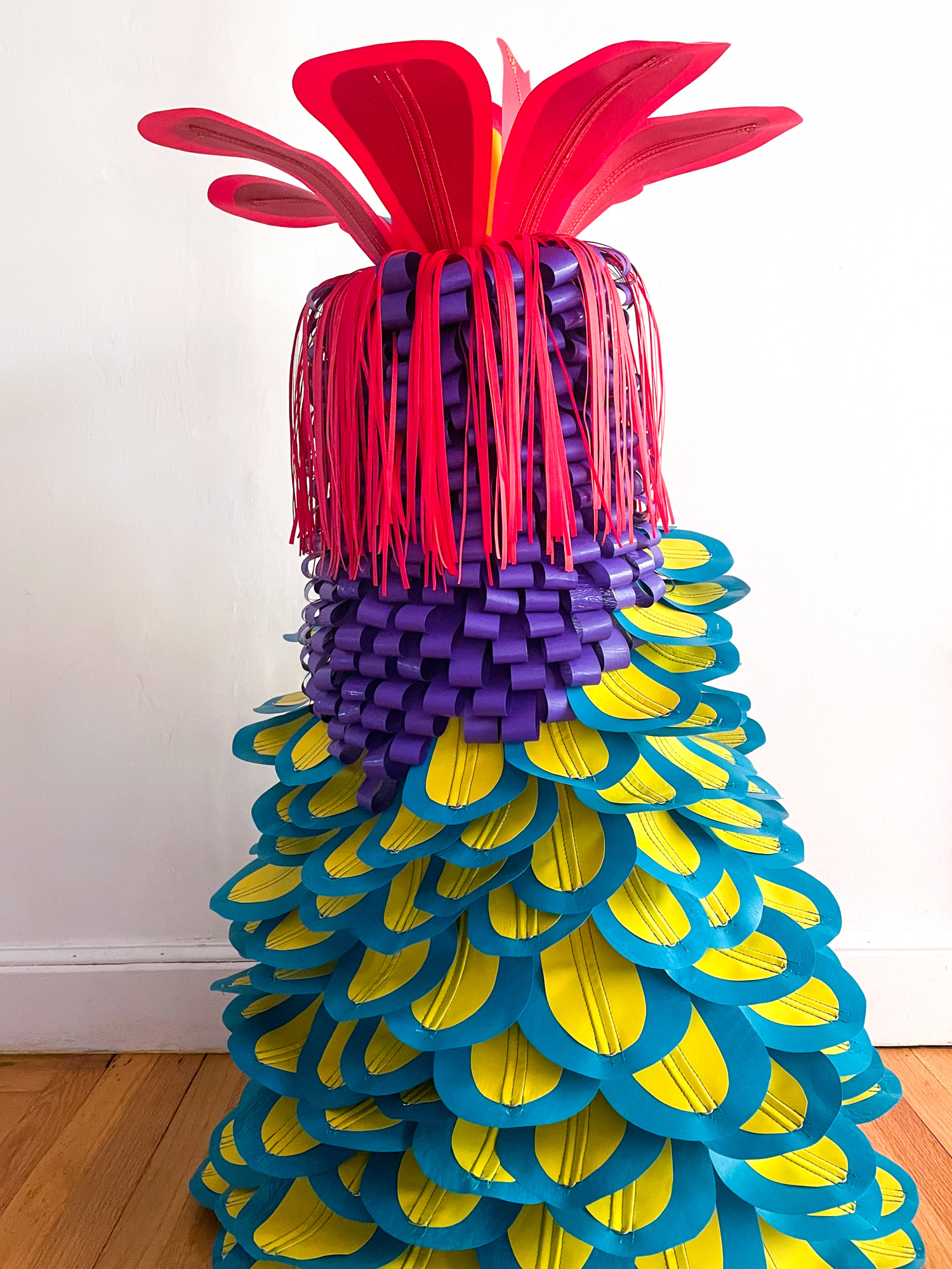 plastic bags, chicken wire, thread