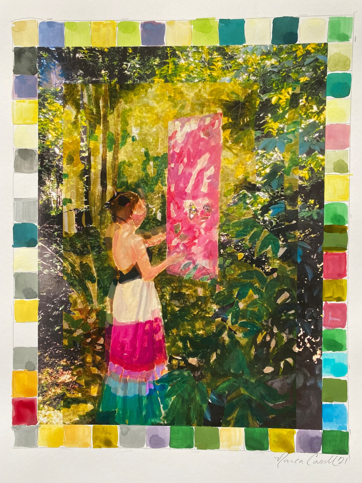 Watercolor and Inkjet pigment on paper; Archivally matted and framed with museum glass