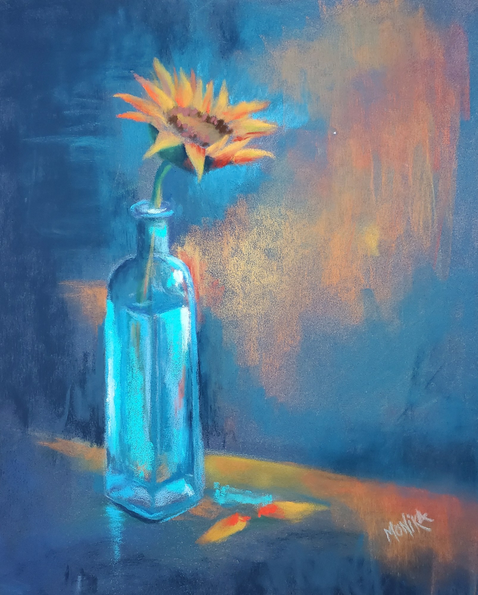 I saw this lovely vase at a craft store and couldn't shake it off. The color plays off so well against yellows and oranges of the sunflower. Definitely my favorite piece from Sunflower series.