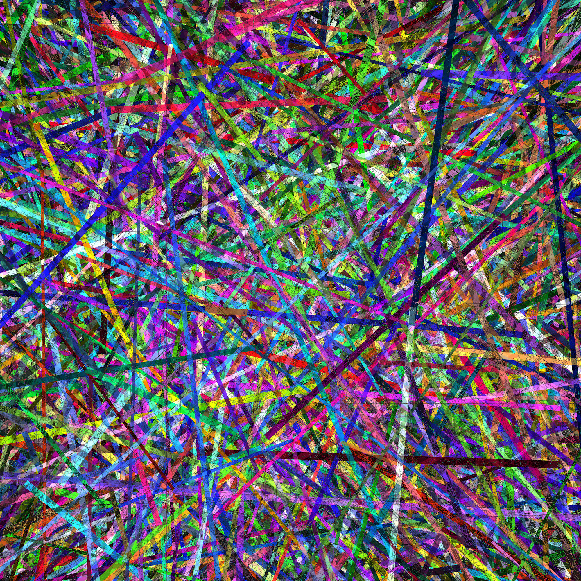 Thousands of straight, colored lines transform before your very eyes! Here is power waiting to explode! The longer one looks, the more the straight lines turn into a mass of swirling currents. Look closely for the surface layer! Is this how CERN looks inside?
