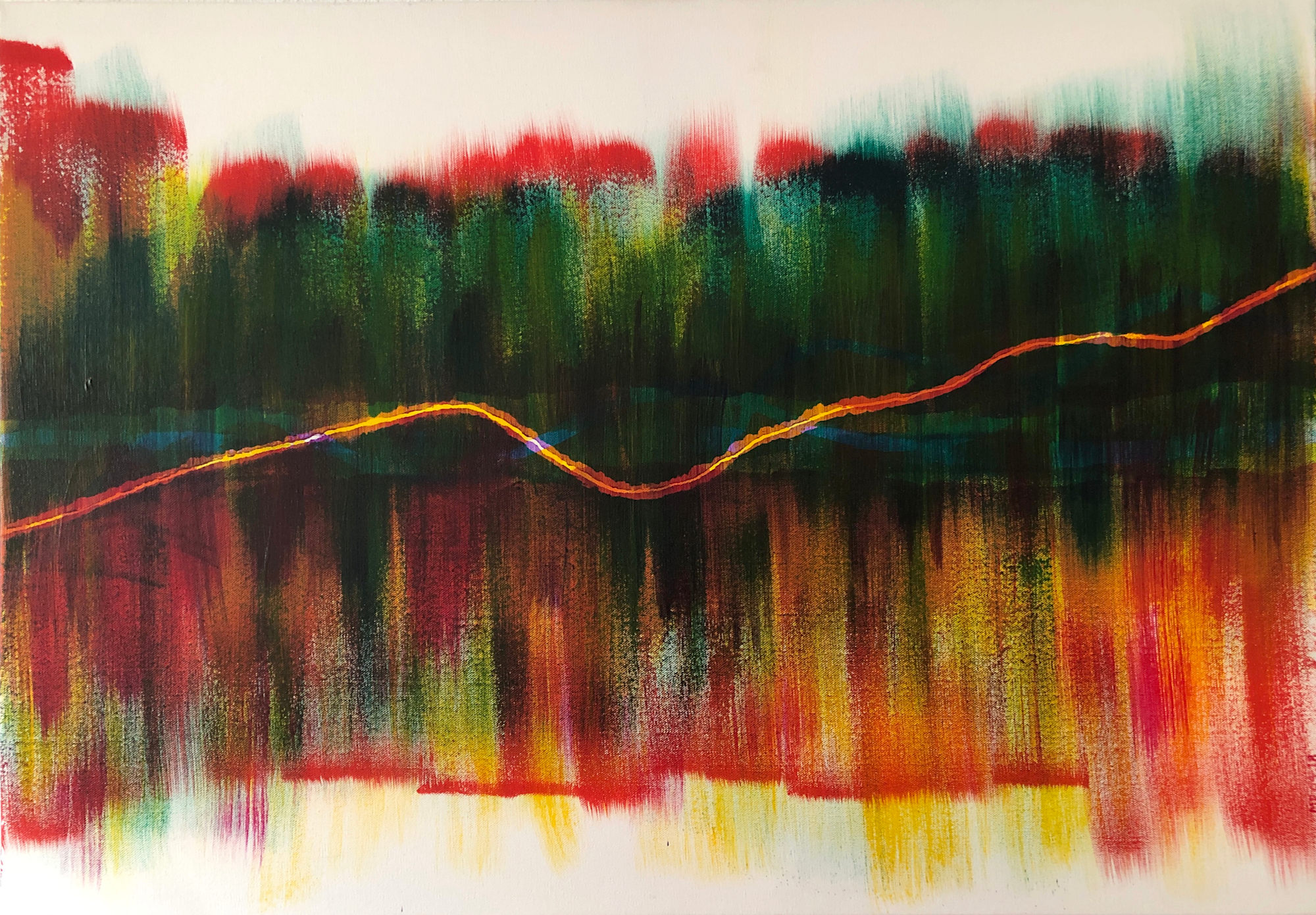 Signature: in red, vertically, bottom right corner.