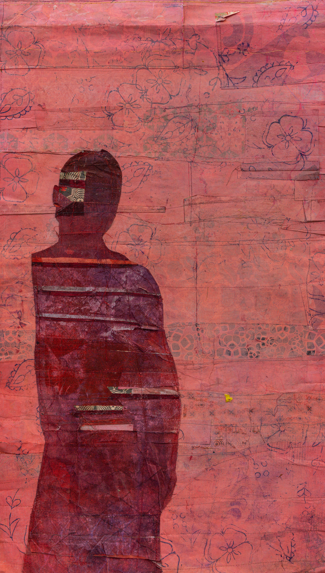 Paper, fabric, and beeswax on wood