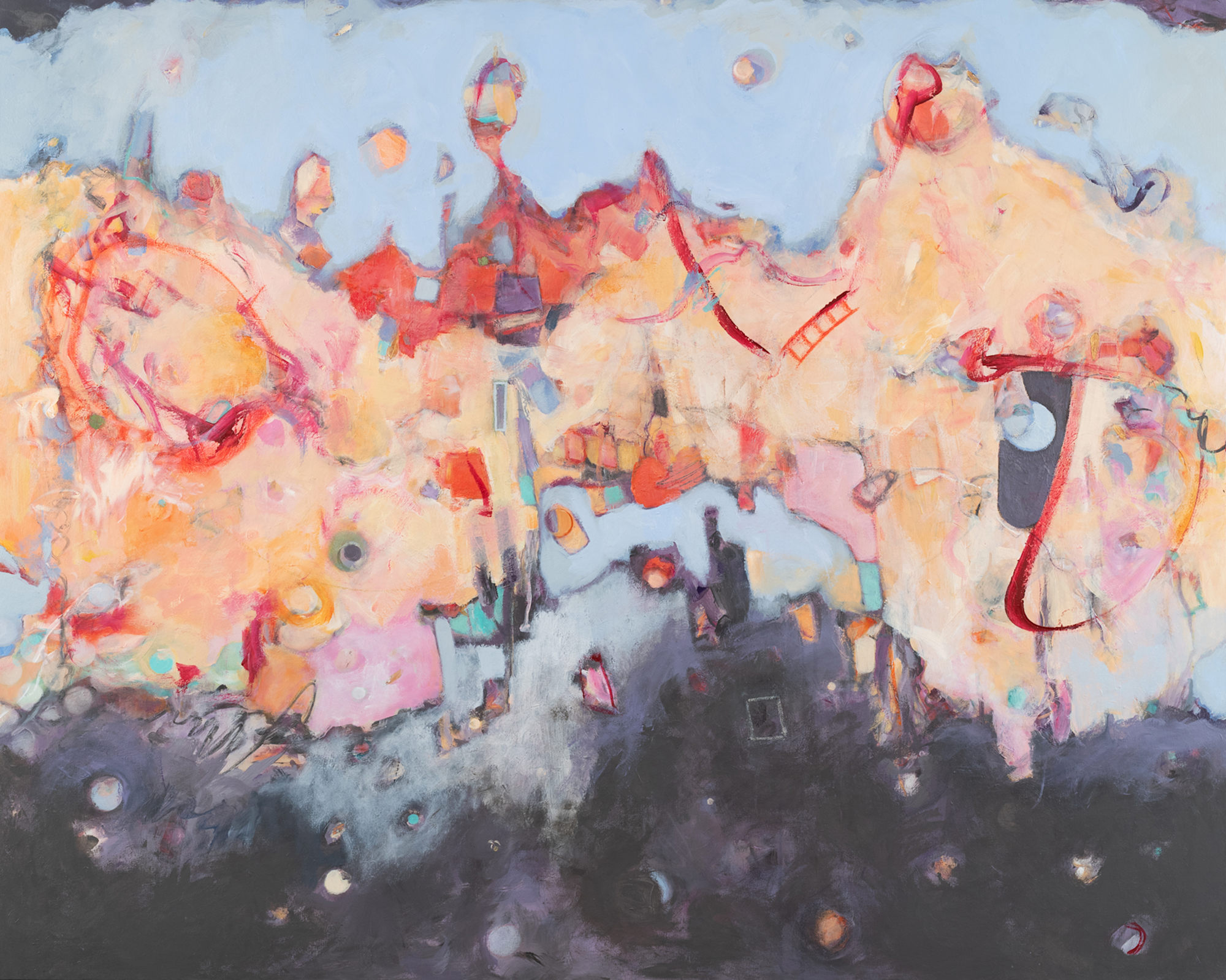 The journey IS the destination. In a digital age of mapquest we often forget to stop along the way. This mixed media painting explores points of interest, working intuitively- to explore the energy and emotion of the experience. I found myself simultaneously circling back, moving forward, letting each point inform the next.