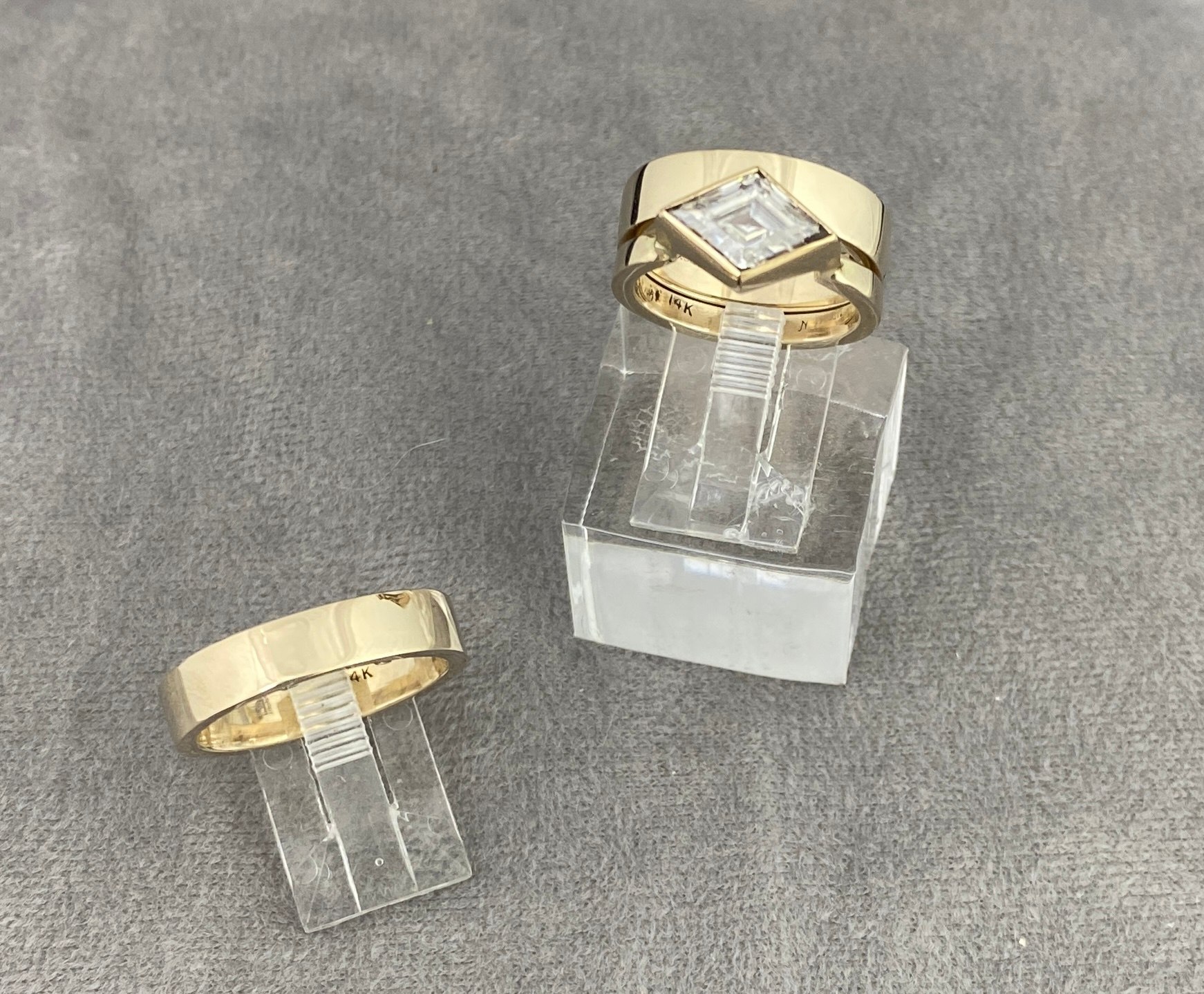 14K yellow gold with Moissanite.