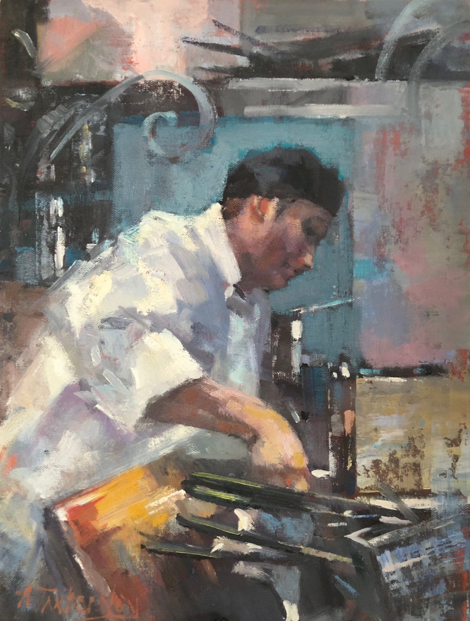 MessageAt a busy French bistro in Alexandria, Virginia a chef cleans up.