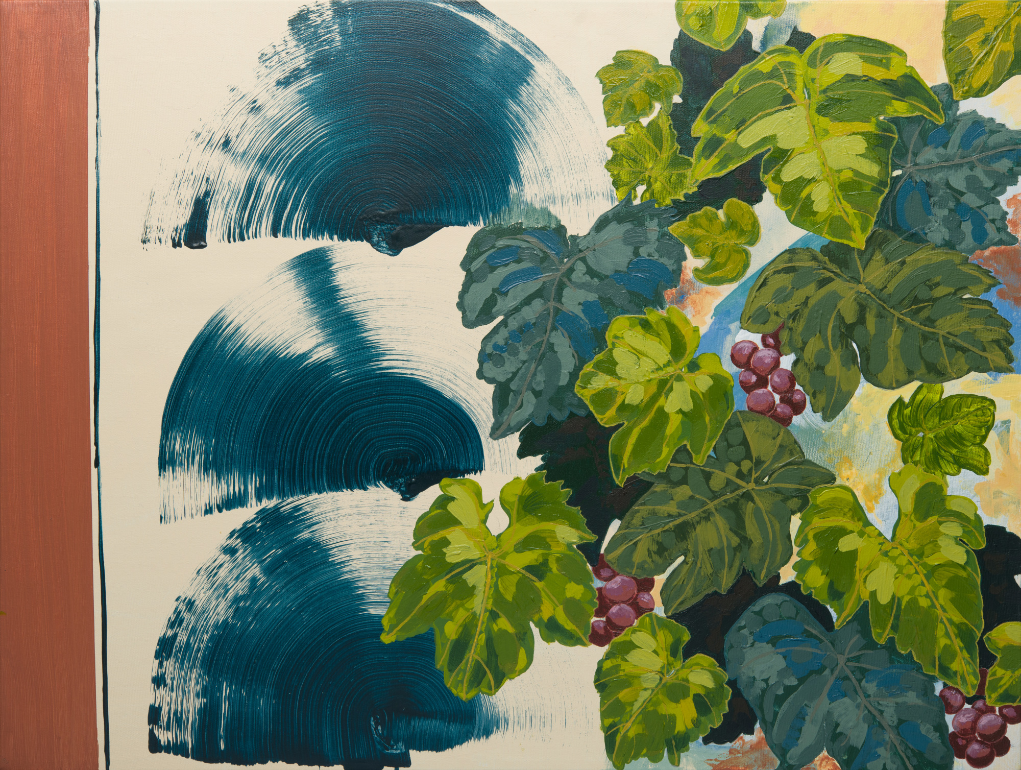 Grape plants are associated with abundance, fertility, transformation, divinity and mysticism. The fans in Abundance are symbolic of wealth, wisdom, protection, and the sun.