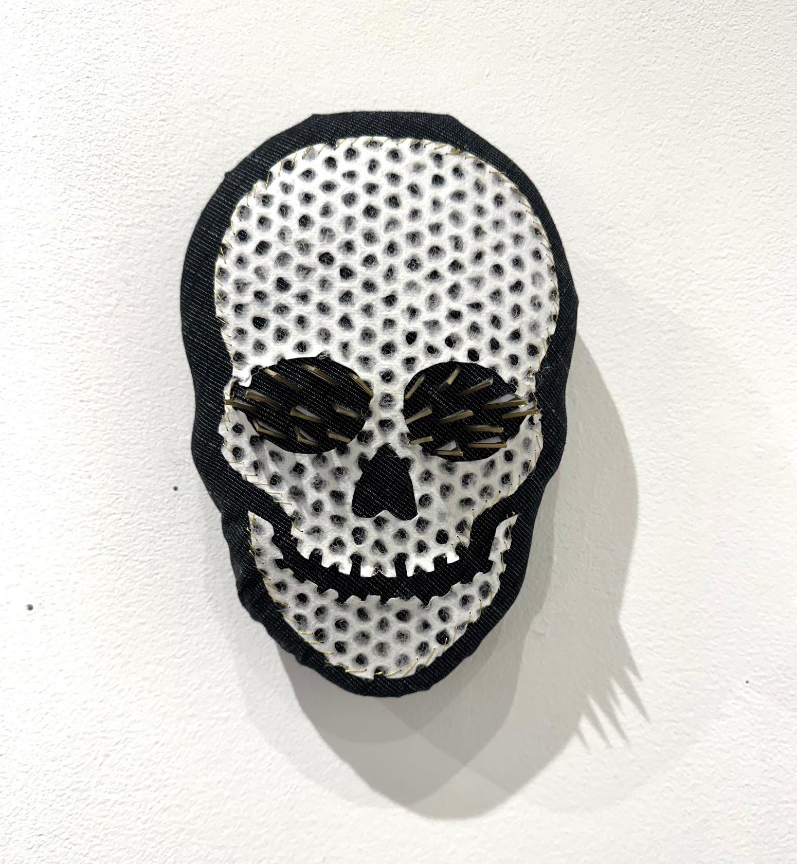 Washi paper, cotton fabric, acrylic and enamel on thermoplastic, foam, panel