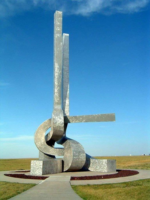 This piece was dedicated on July 4, 1976, as part of Nebraska's celebration of the U.S. Bicentennial. "Roadway Confluence" was a part of a collection known as the 500-mile Sculpture Garden, consisting of eight sculptures along I-80 across the state of Nebraska.