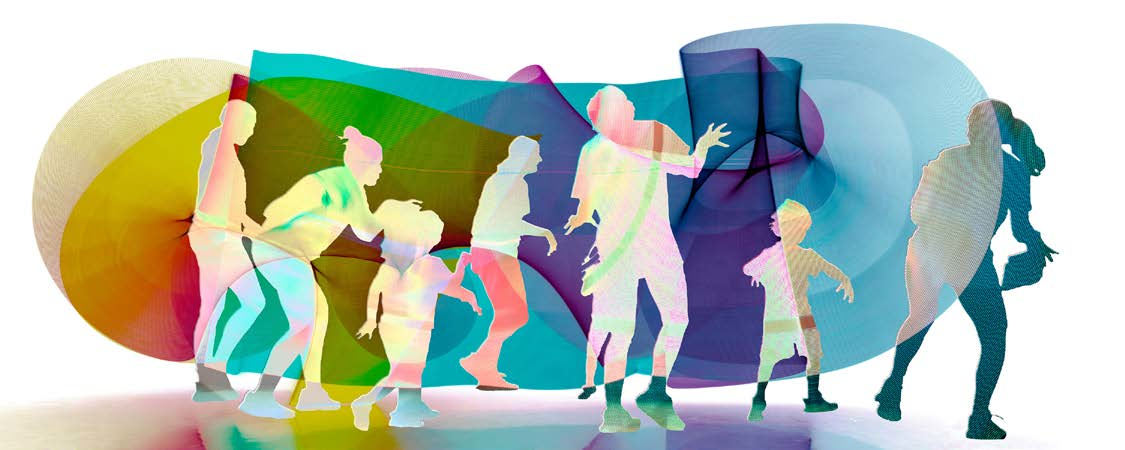 Run, Throw, Glide, Roll, Breathe brings together elements from each research group within the building, presenting these themes through vibrant, community-focused artwork. The piece uses bold colors to guide viewers as they navigate the hallways, inviting them to engage with the space through their own movements. The artwork is intentionally inclusive, representing individuals of all abilities and depicting mobility aids as integral parts of the story.