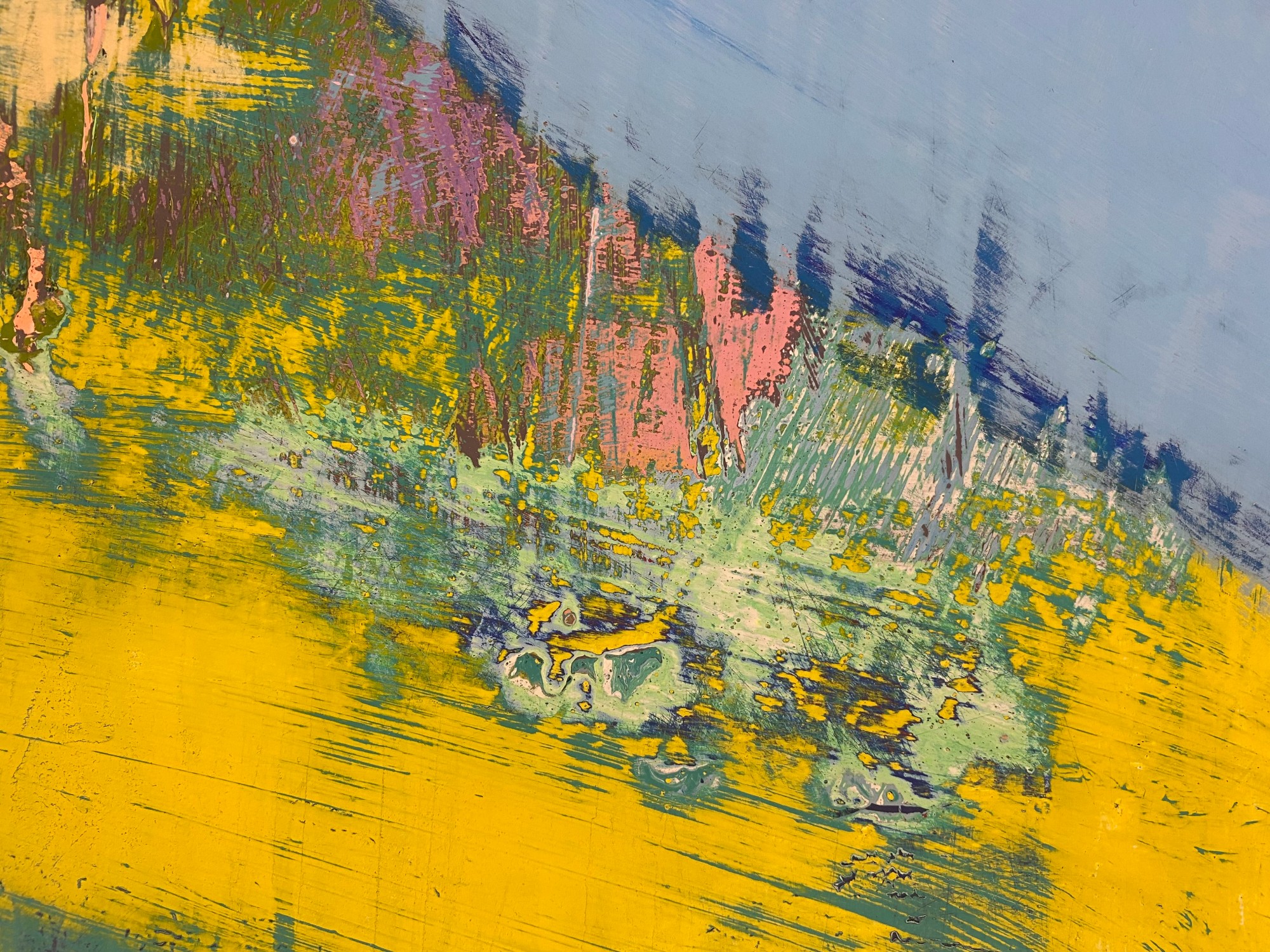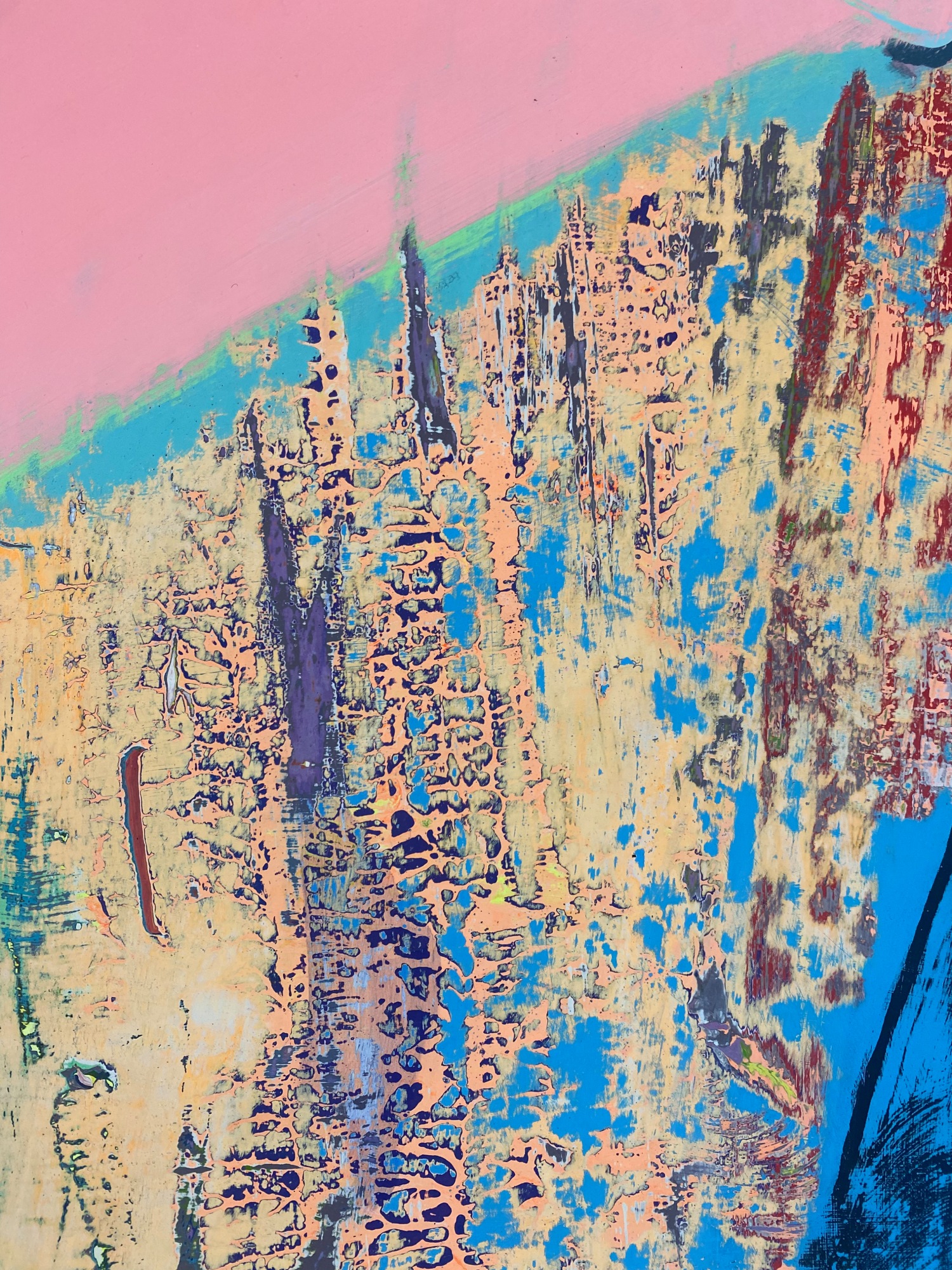 conceptual figurative, abstract expressionism, bright colours, butterfly, conceptual landscape