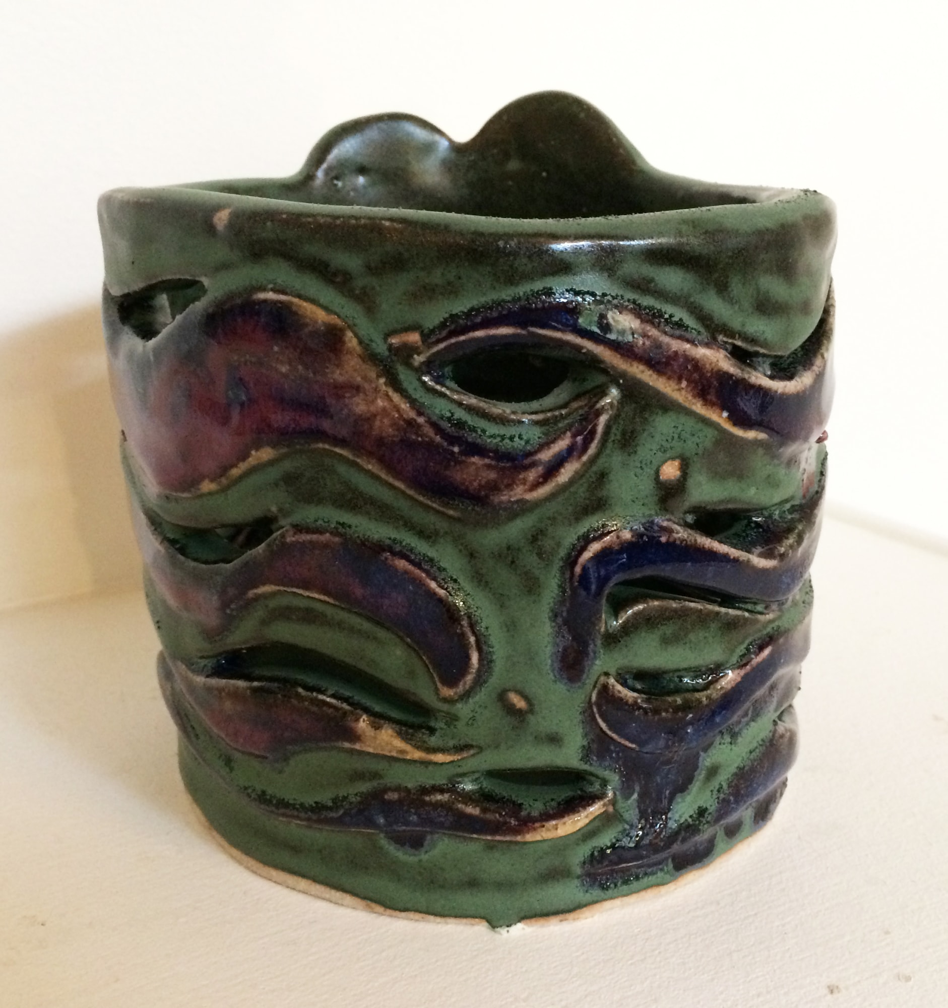 These 2 pots were a consignment, and are sold. Created by coiling and carving, glazed with Blue Monday. Reitz green and honey celadon, and fired in reduction.