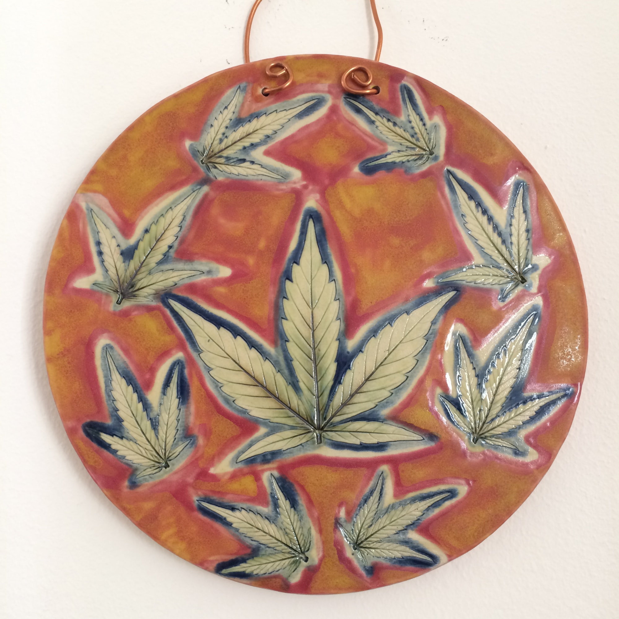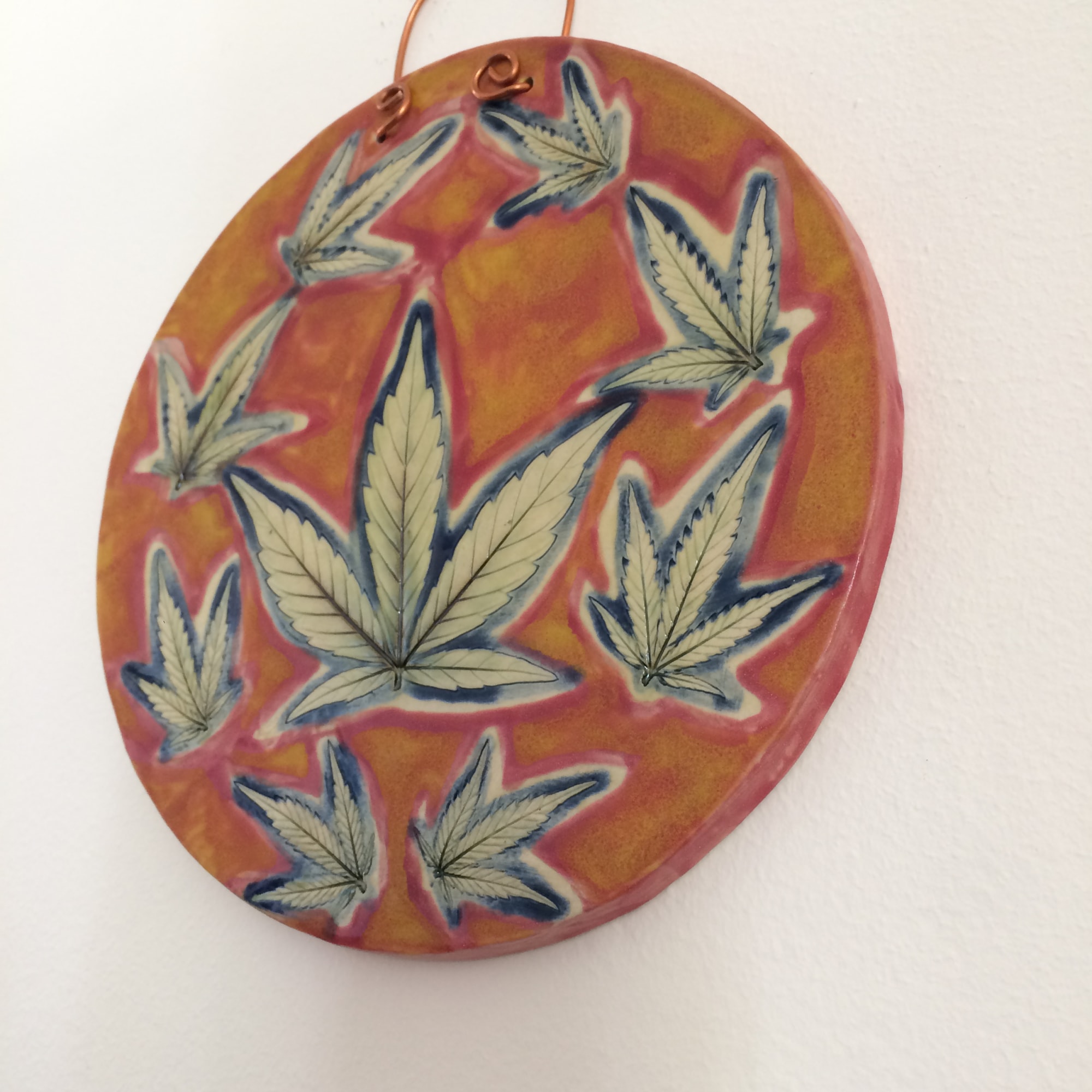 This hot colors weed leaf impression wall hanging brightens up all spaces