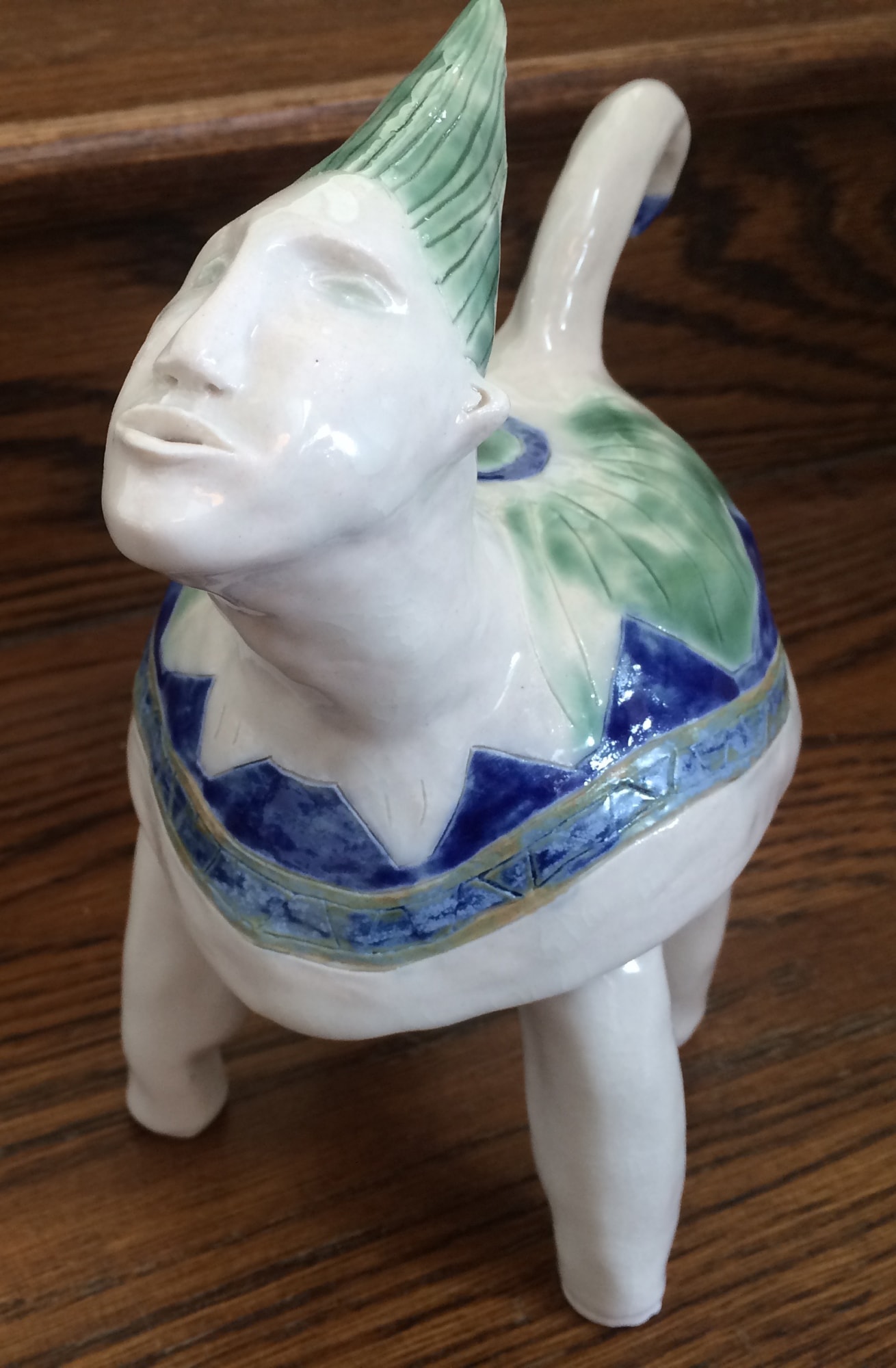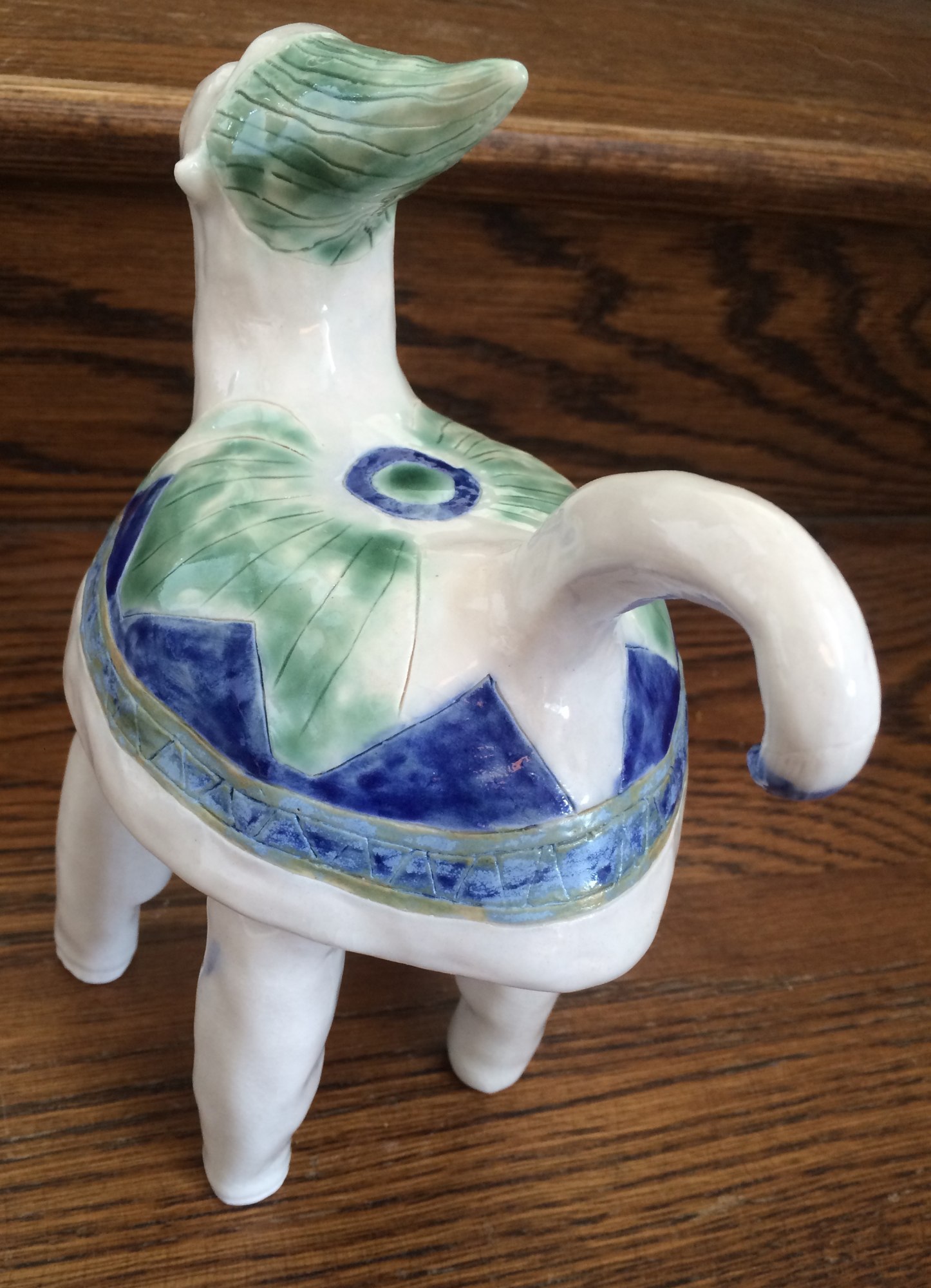 Inara the unusual unicorn is a porcelain creation with some translucent gazes that allow the etched designs to show through. She has an aura of luminance.