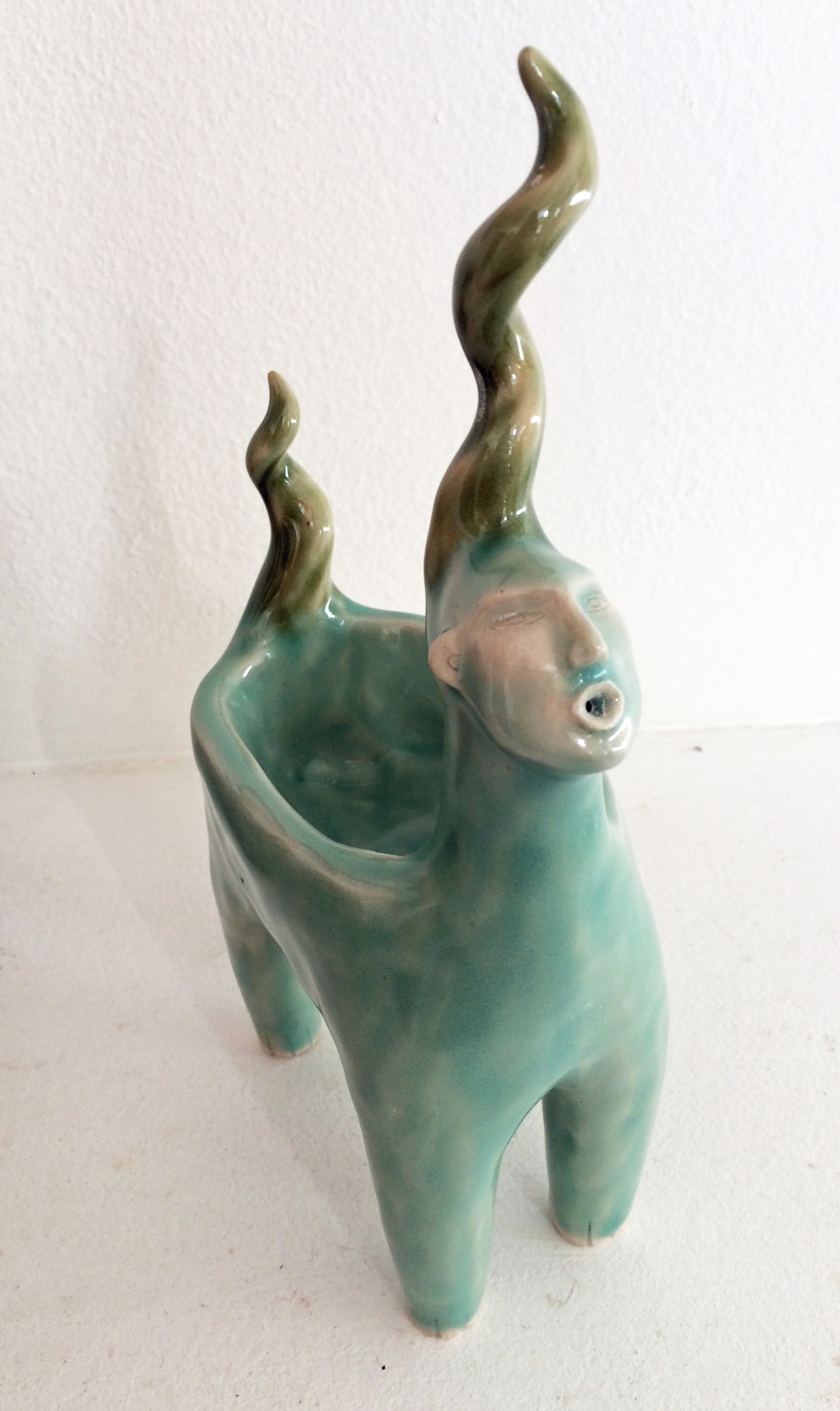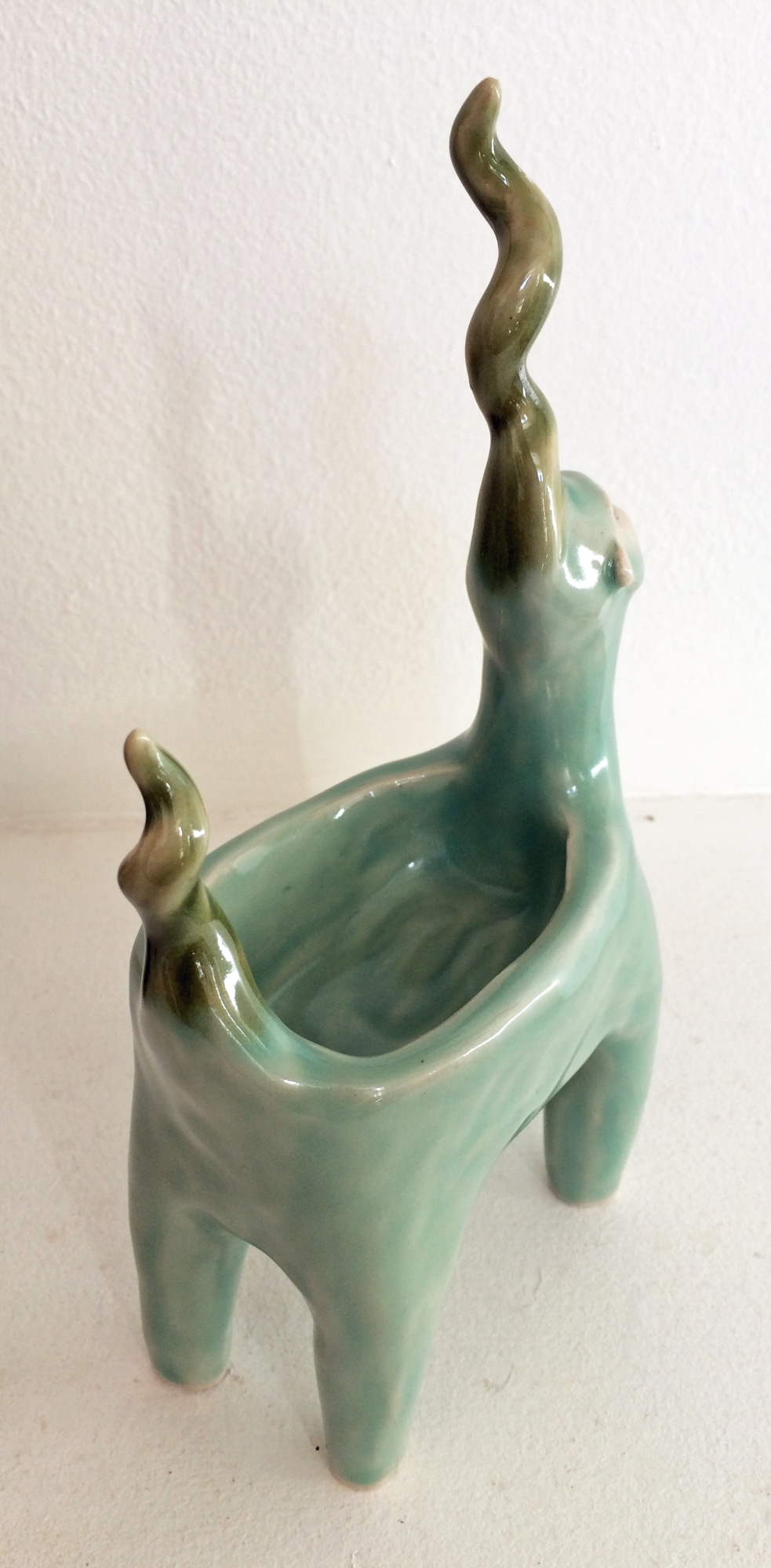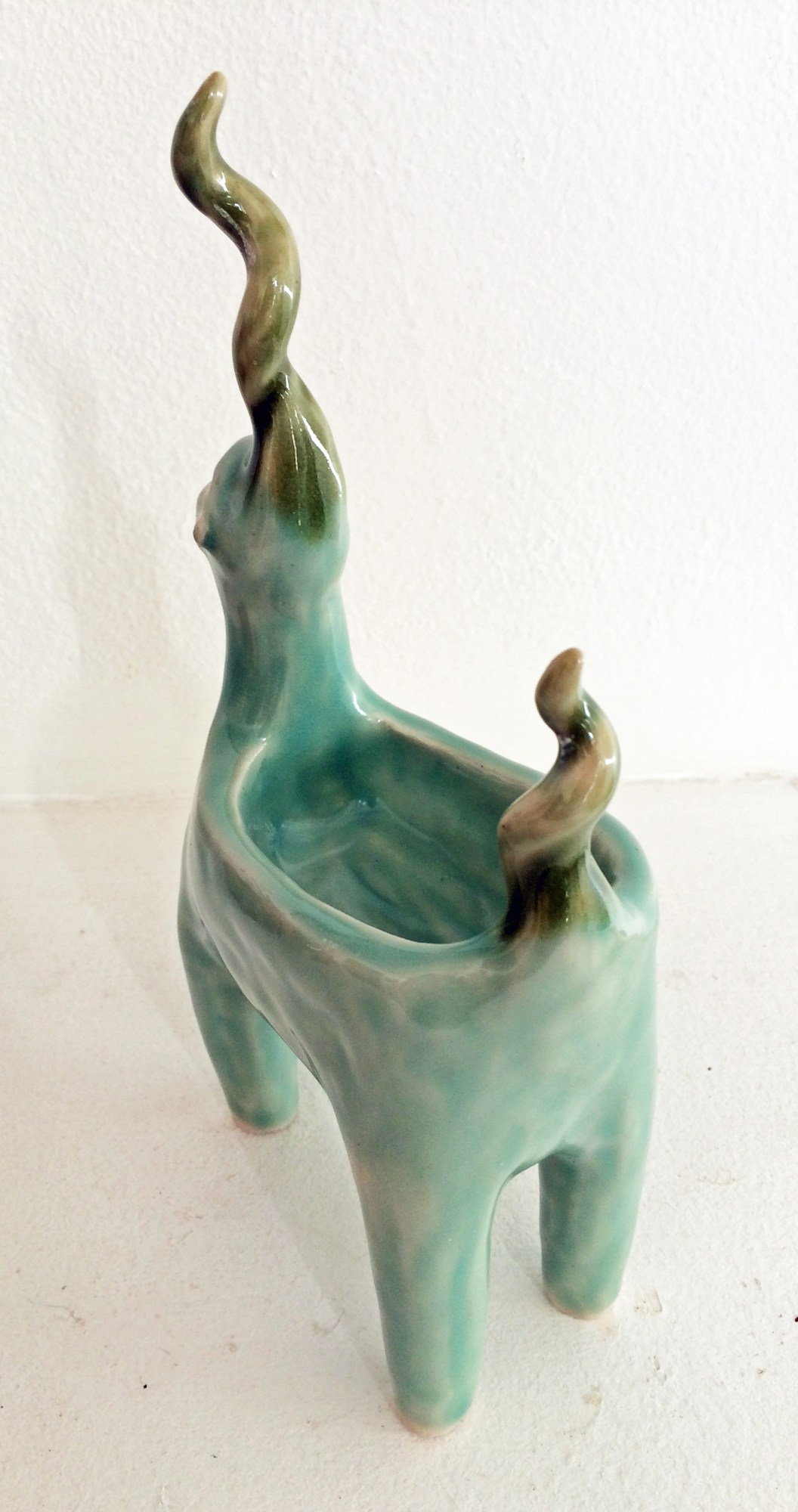 Kia the cloud caller is handy have around if your thirsty. She runs through fields of flowers and brings back sweet dreams and maybe a few rain drops in her bowl. Or use her bowl to store extra wishes, serve some green olives...