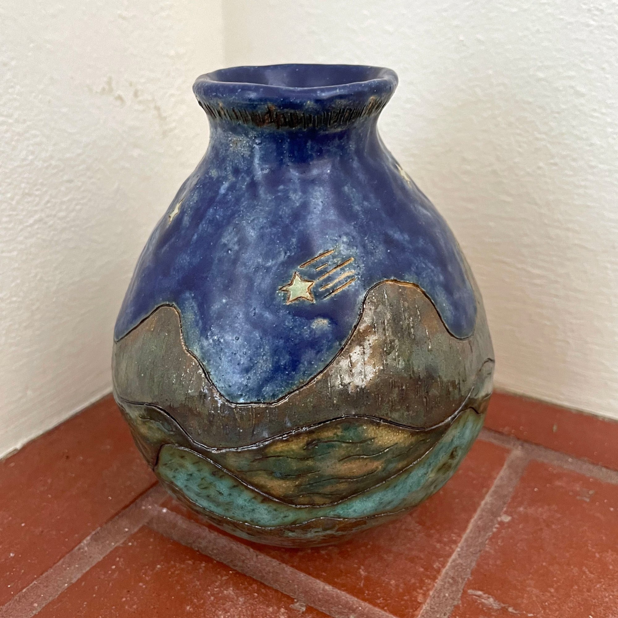 The Soft Midnight Landscape Vase is one of a series that explores how texture and color can echo feelings of wonder, awe and mystery.