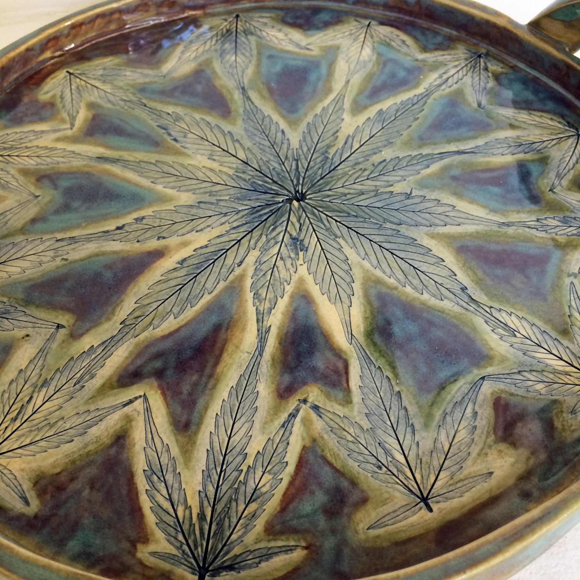 This is a spectacular and useful piece of nature based art. Pot leaves have a wonderfully graphic shape that allows an artist to have fun with the endless geometric possibilities.