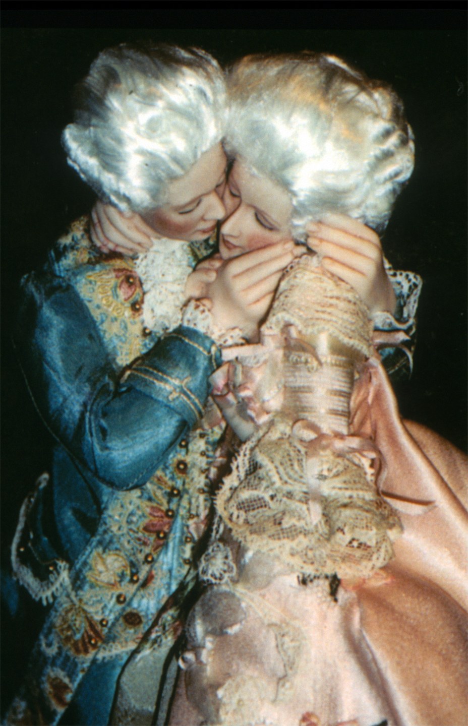 my Kiss Couples are among my most technically challenging, yet rewarding, creations. I sculpt the male and female figures individually, then made molds of each. I join and resculpt porcelain casts of the two figures to reflect the intimate mood of the lovers.
