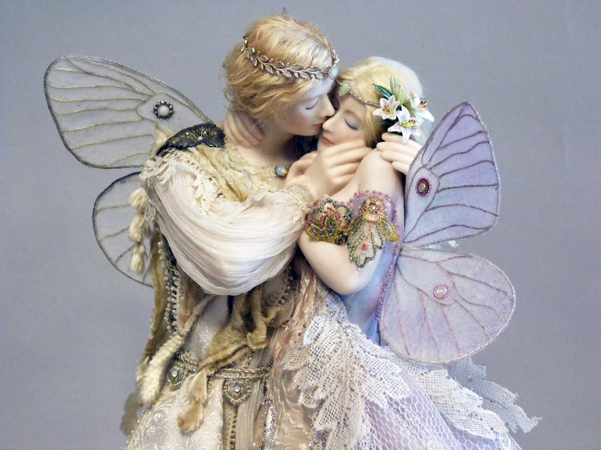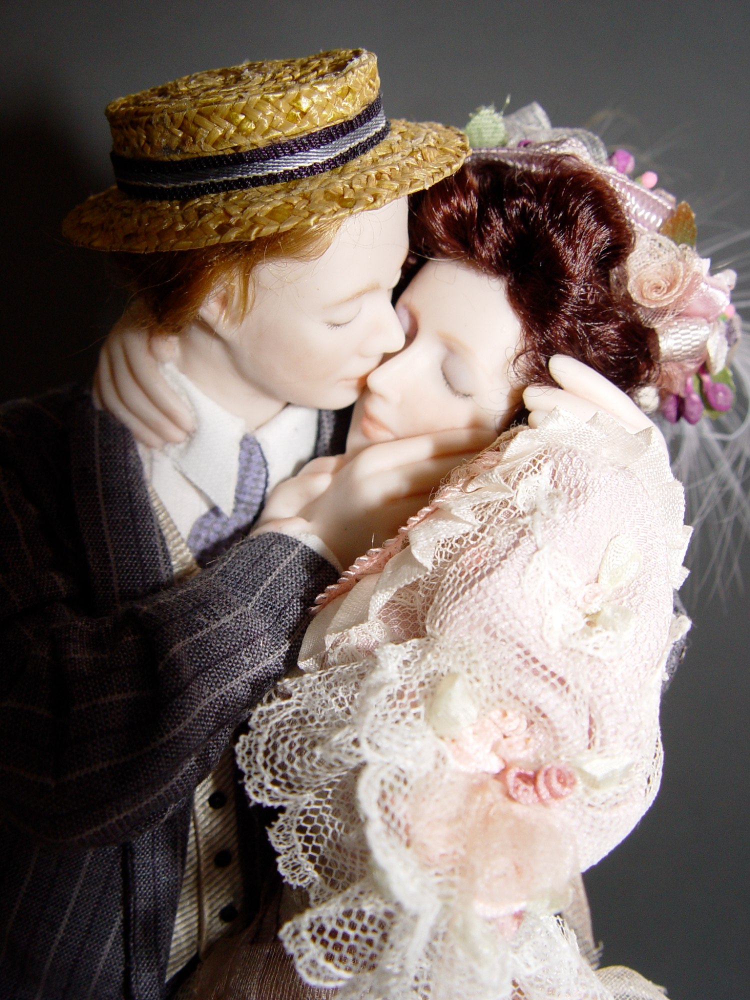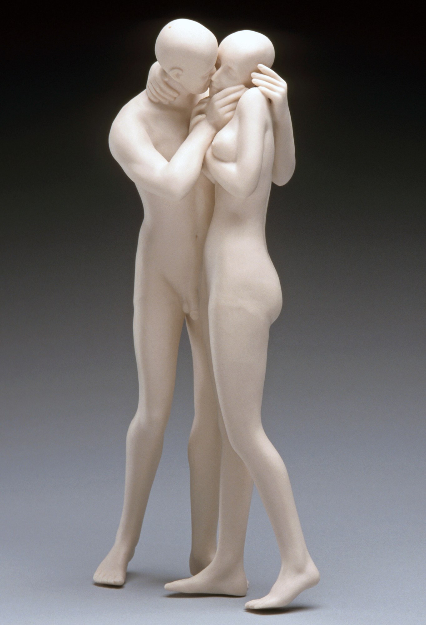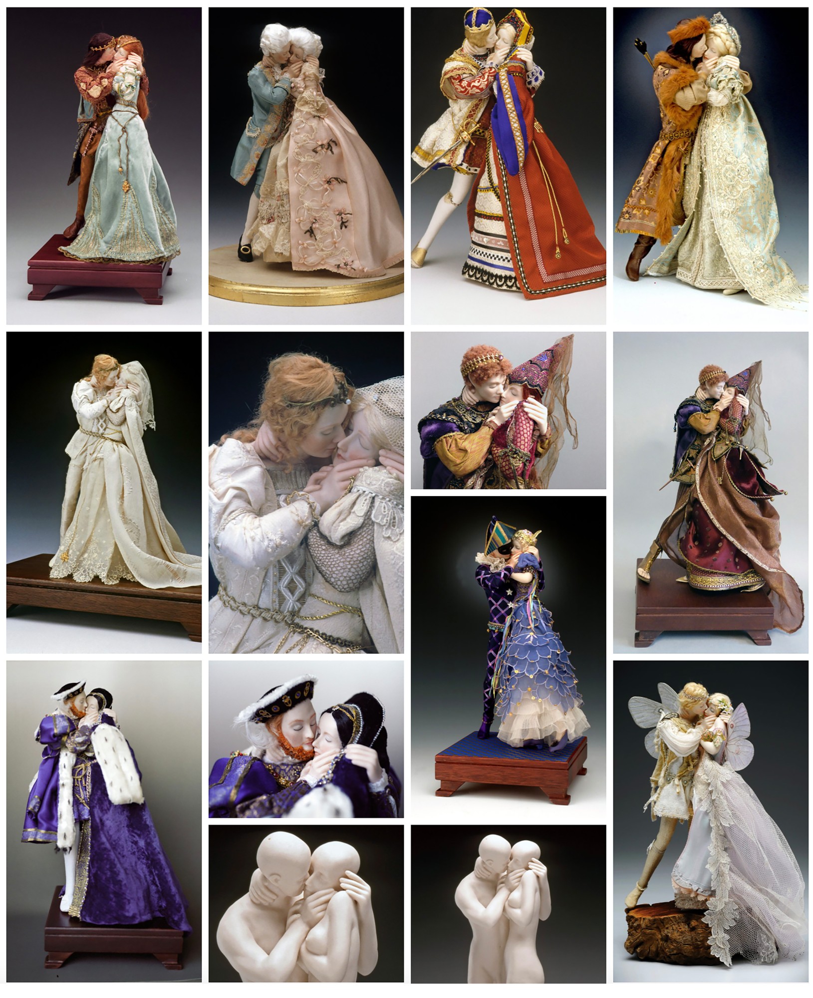 my Kiss Couples are among my most technically challenging, yet rewarding, creations. I sculpt the male and female figures individually, then made molds of each. I join and resculpt porcelain casts of the two figures to reflect the intimate mood of the lovers.