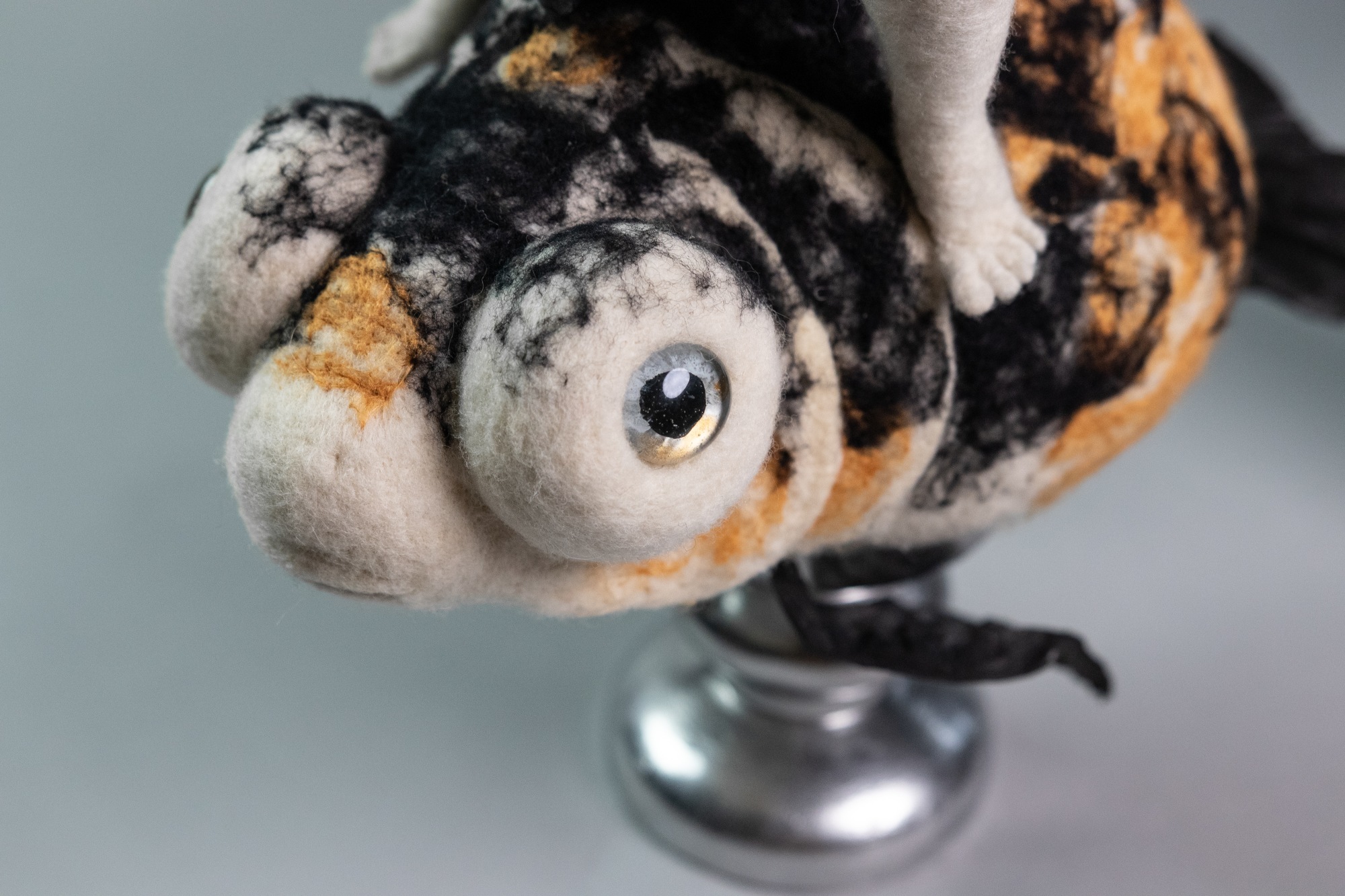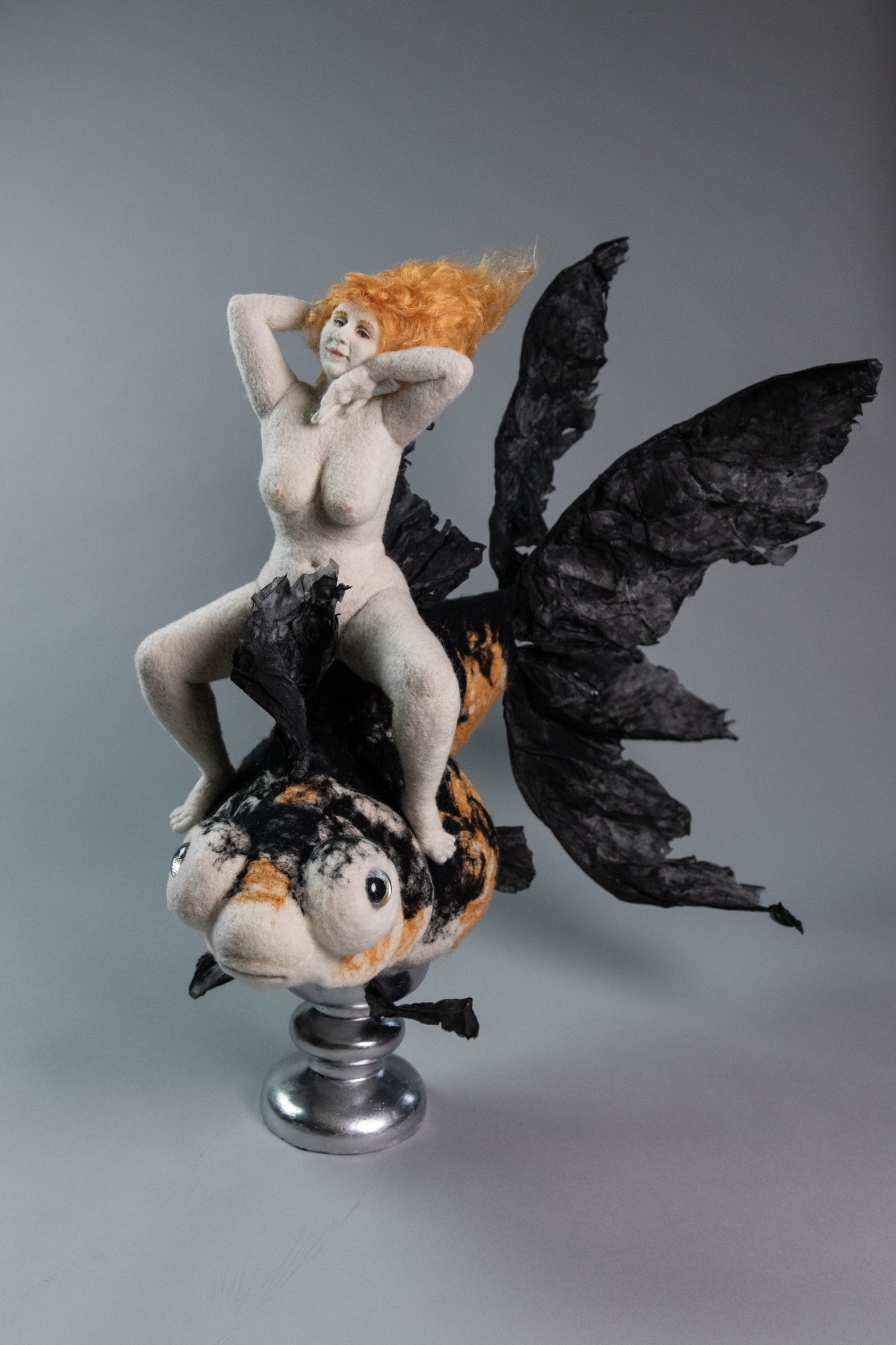 Needle felted wool on a wire armature, Peace silk, tengucho paper