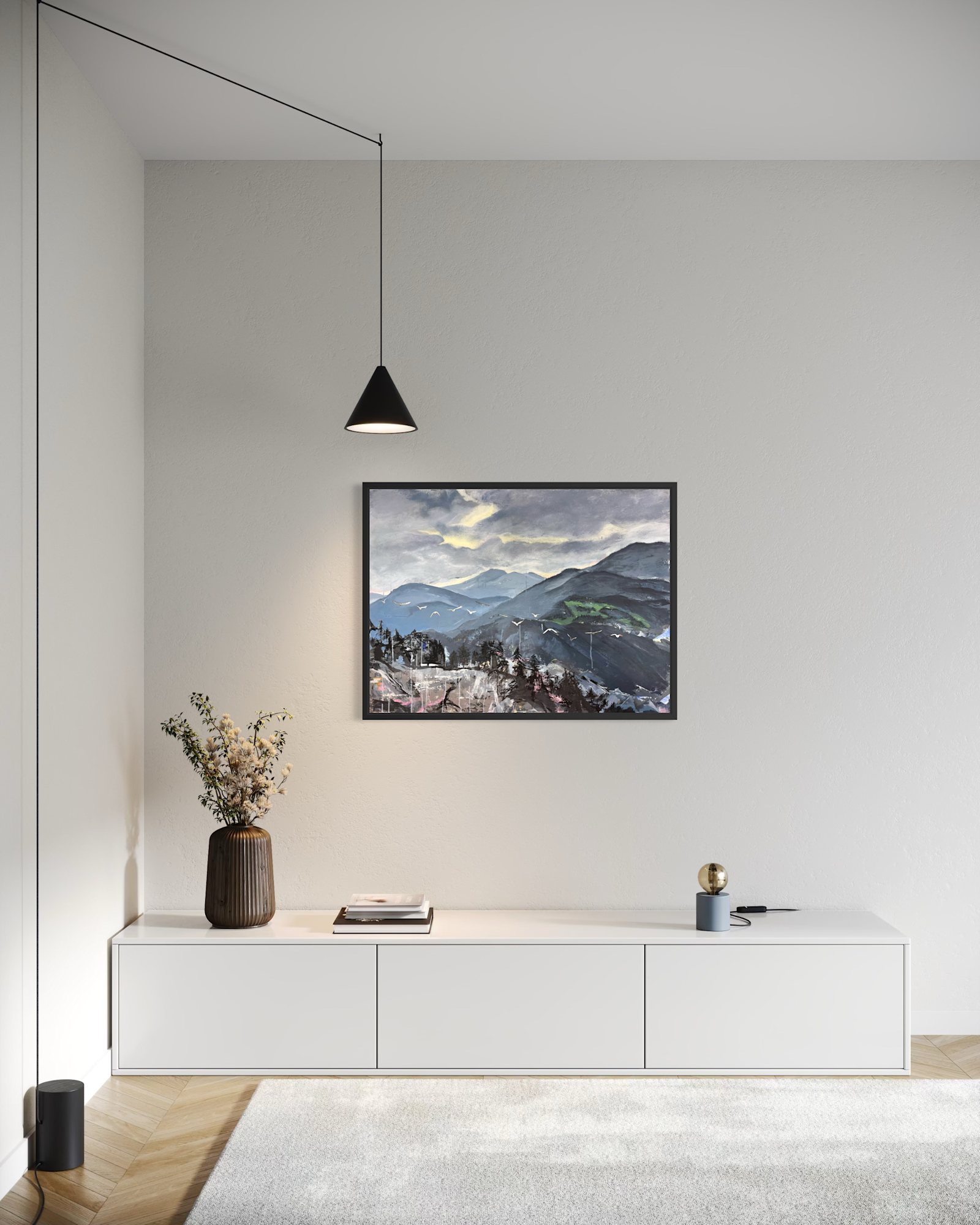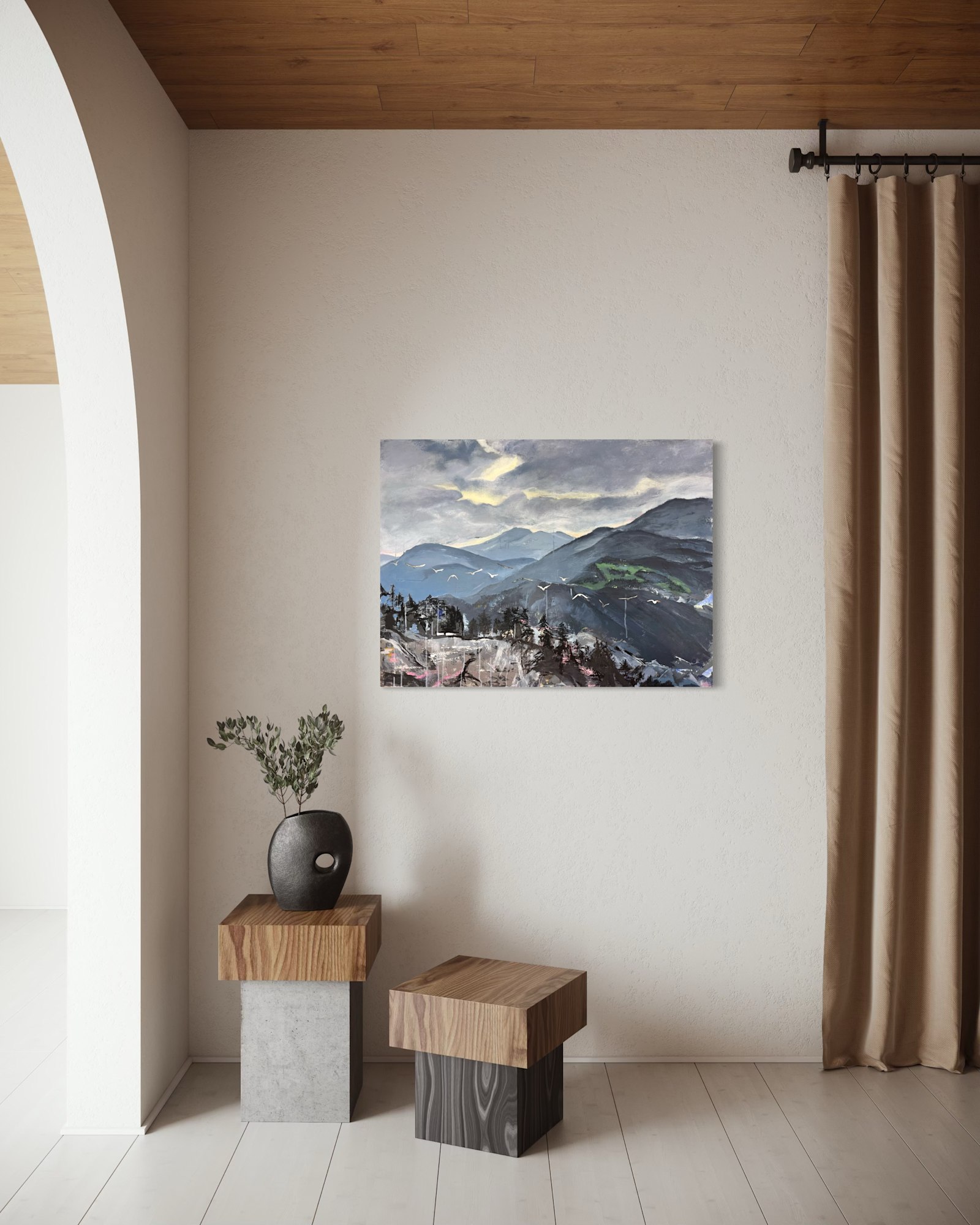Abstract Landscape, Birds, Landscape, Birds in Flight, Mountains, Horizon, Clouds