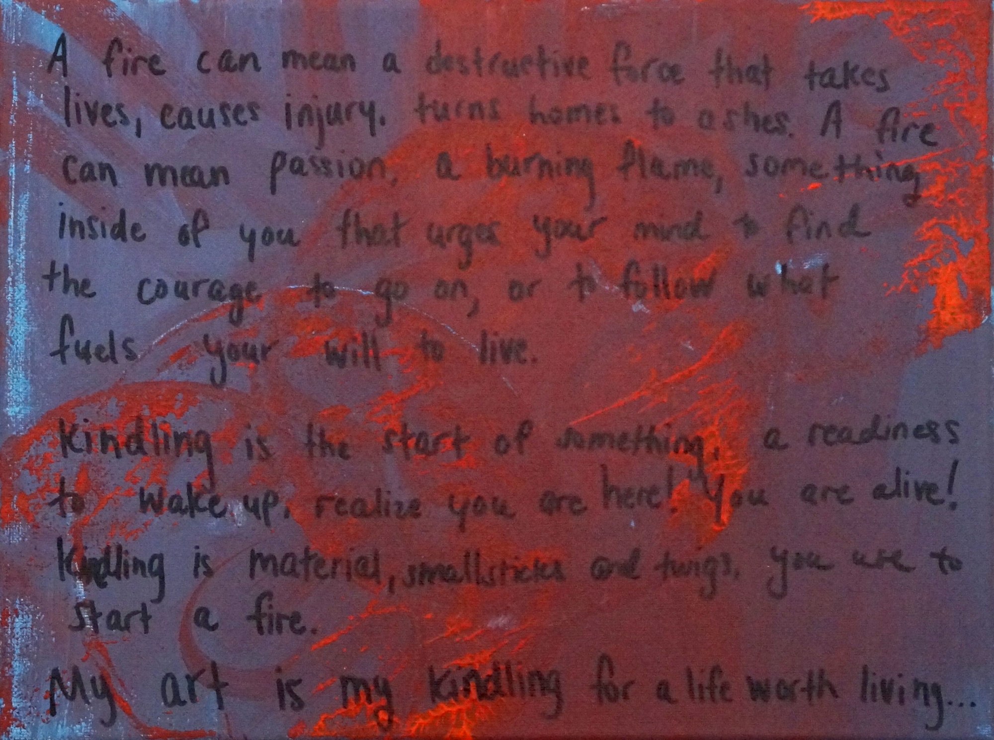 Kindling is material like small sticks and twigs you can use to start a fire. What would it mean to call my art kindling?