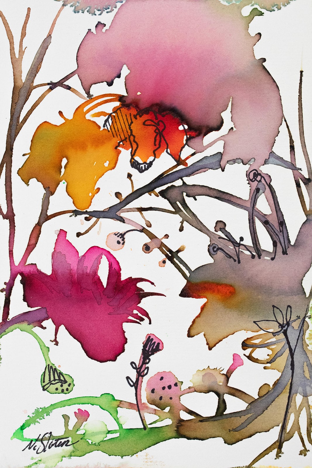 Contemporary watercolor paintings on professional cold pressed paper. Images are inspired by nature, florals, birds, and insects, conveys a message of joy, beauty, and a connection to the natural world. Created with vibrant colors, delicate details, and the sense of life and vitality.
