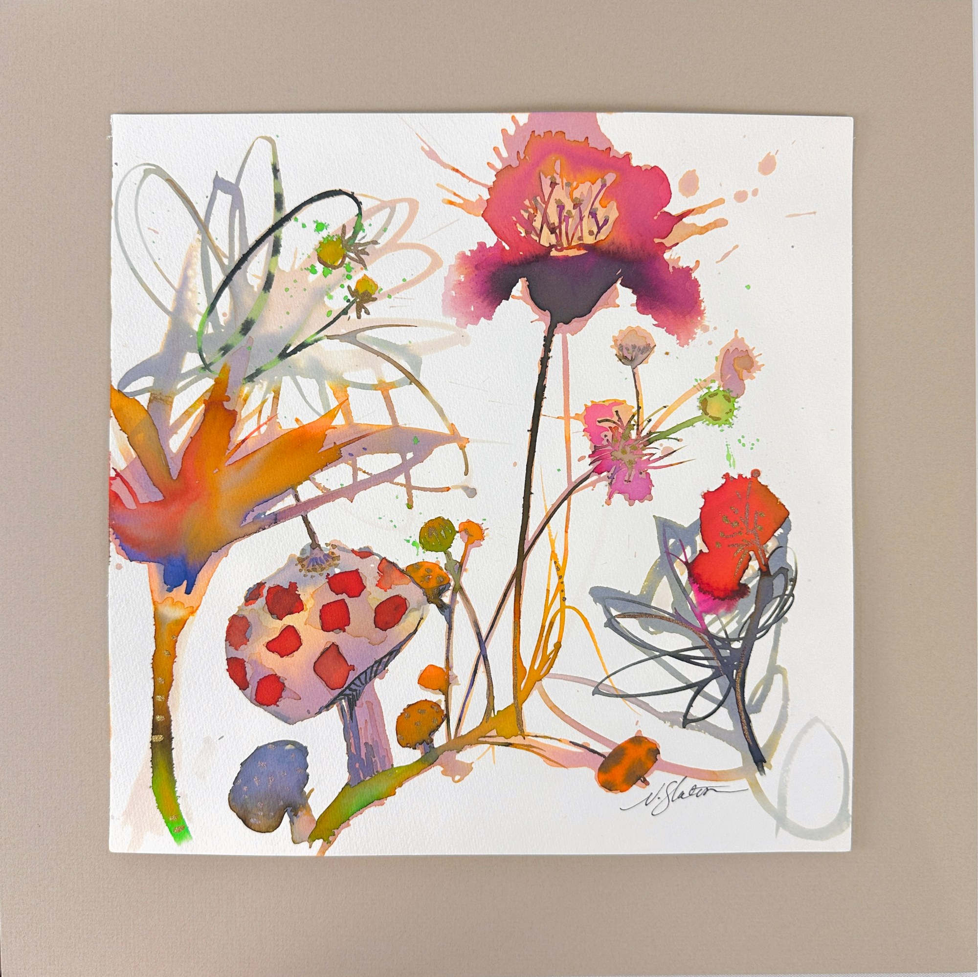 This beautiful paper art measures 16 x 16" and comes with a mat board for easy display. It has been securely attached using archival museum tape, creating a visually pleasing border. The organic waves in the paper are intentional and add to its charm. You can frame it using your preferred frame or remove the hinge mount for a more customized look. This art piece will be a great addition to your collection.