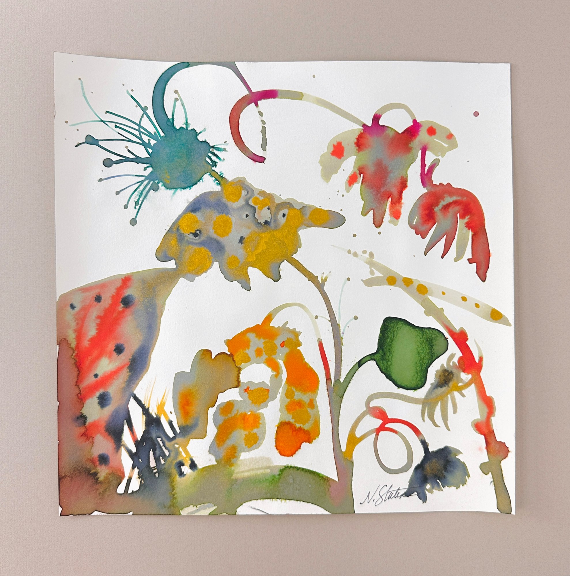 This beautiful paper art measures 16 x 16" and comes with a mat board for easy display. It has been securely attached using archival museum tape, creating a visually pleasing border. The organic waves in the paper are intentional and add to its charm. You can frame it using your preferred frame or remove the hinge mount for a more customized look. This art piece will be a great addition to your collection.
