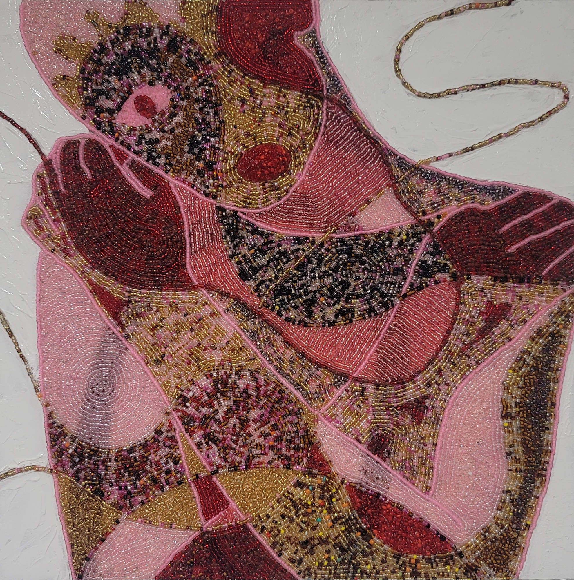 A woman enveloping herself in a tender embrace- a reflection of inner peace. The artwork is a capture of the beauty of self-love and self-acceptance, and the realization that completeness comes from within.