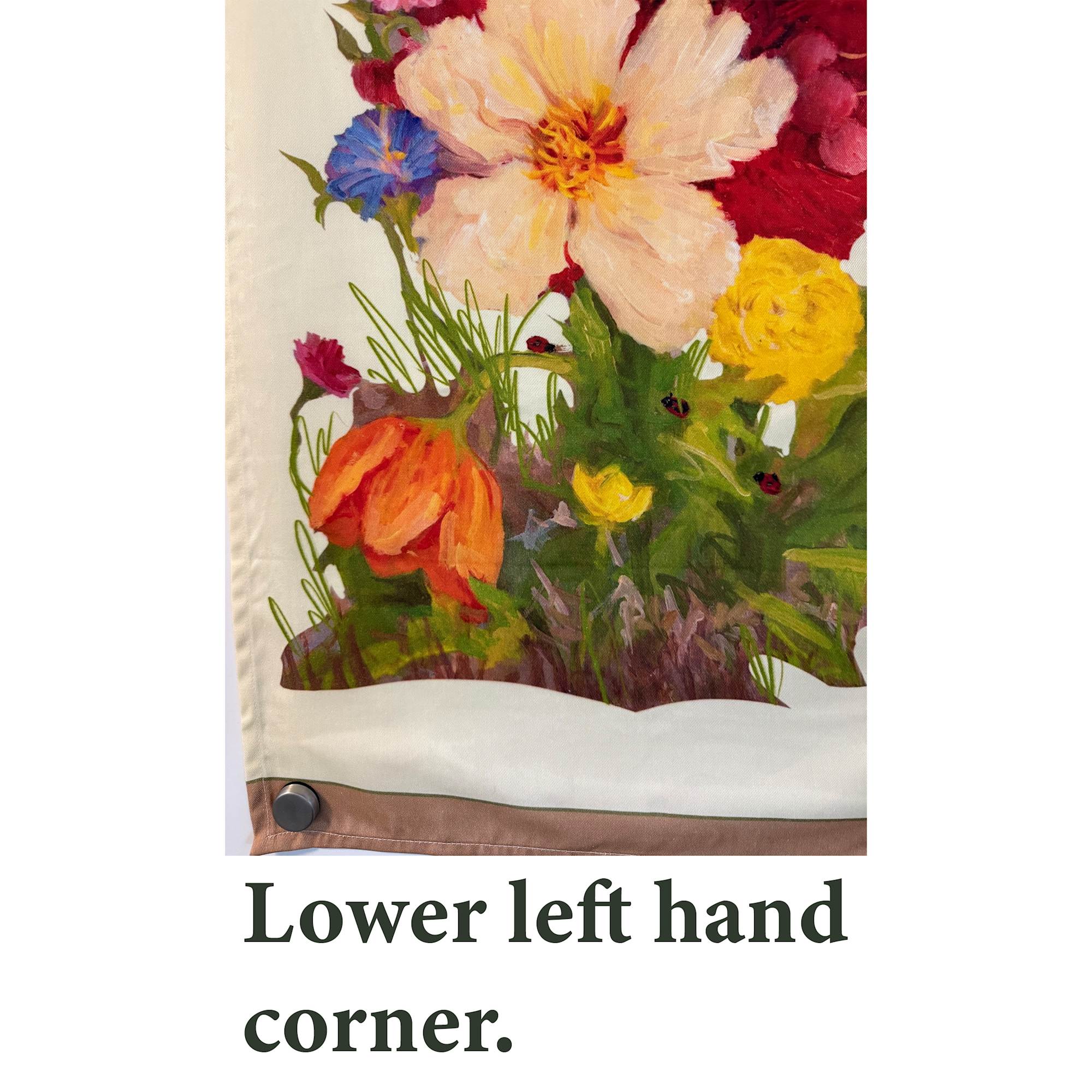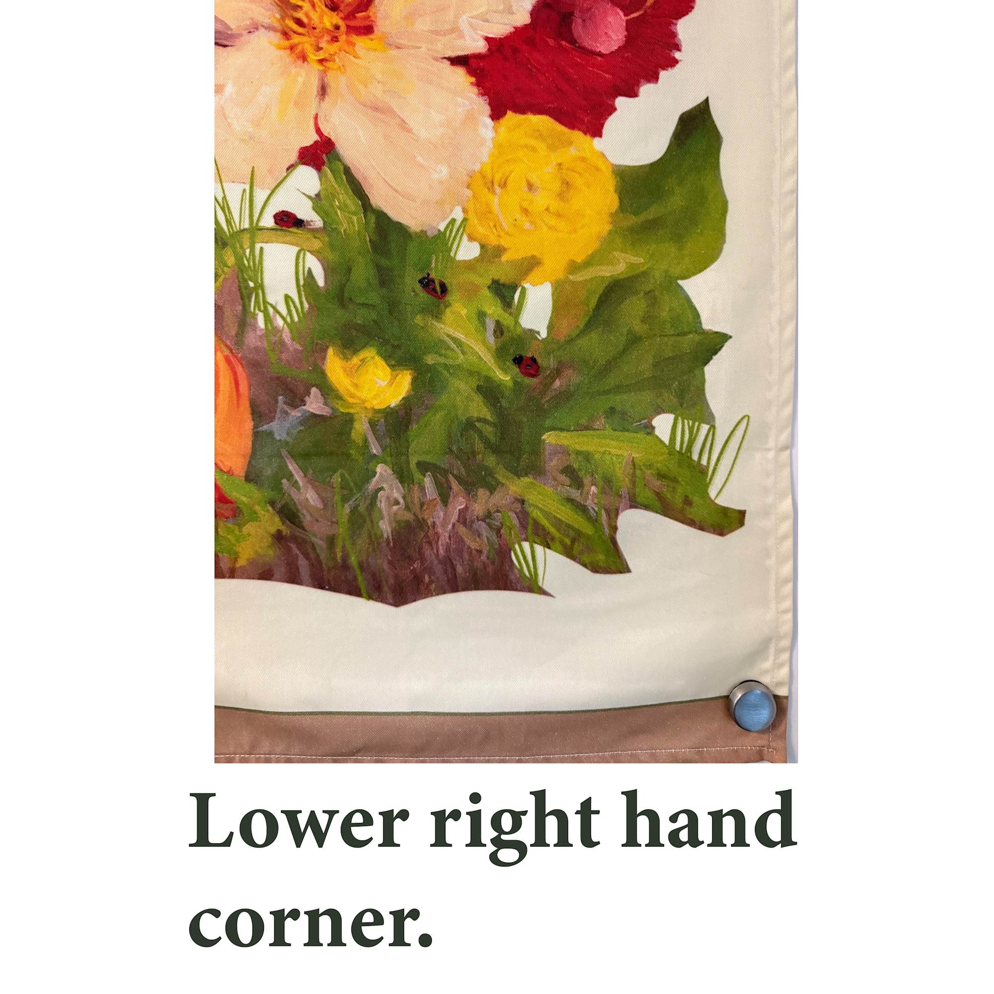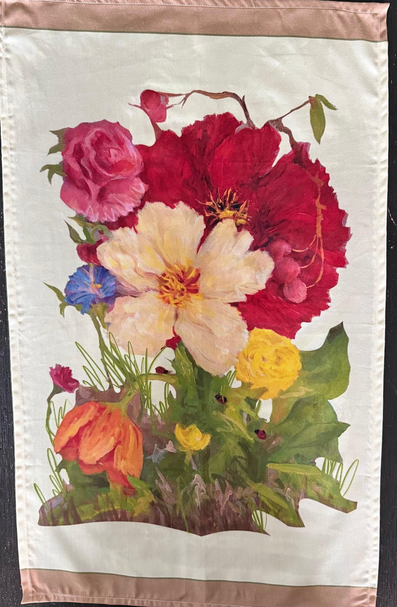 This cotton twill tea towel is 18 x 30 inches, designed from one of Nikki Dunay's paintings.