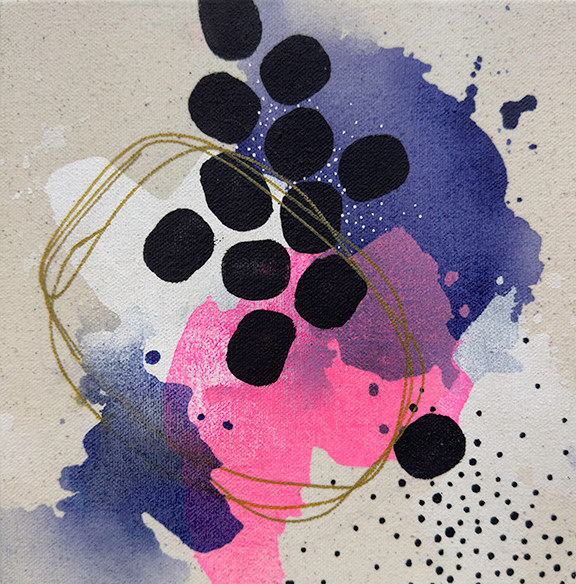 Curiosity killed the cat, but for an Artist curiosity pushes us forward. This painting is all about my curiosity. What would it be like to paint on canvas, why don’t I ever paint with purple (it is my favorite color), how does this pour media work. I followed those questions and got a painting that reminds me of the galaxy and its endless possibilities.