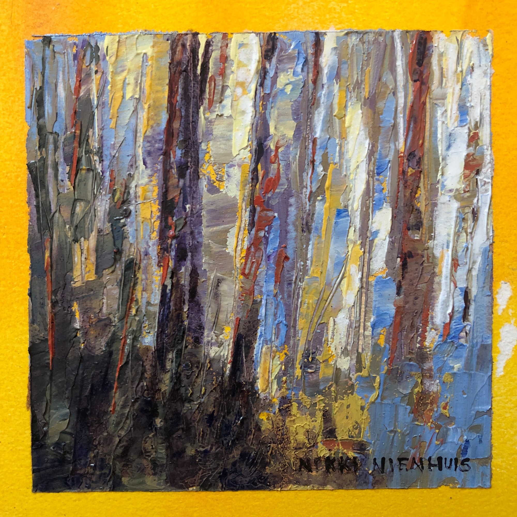 This one says "Seeking balance among the fallen trees", my own words written under the paint.