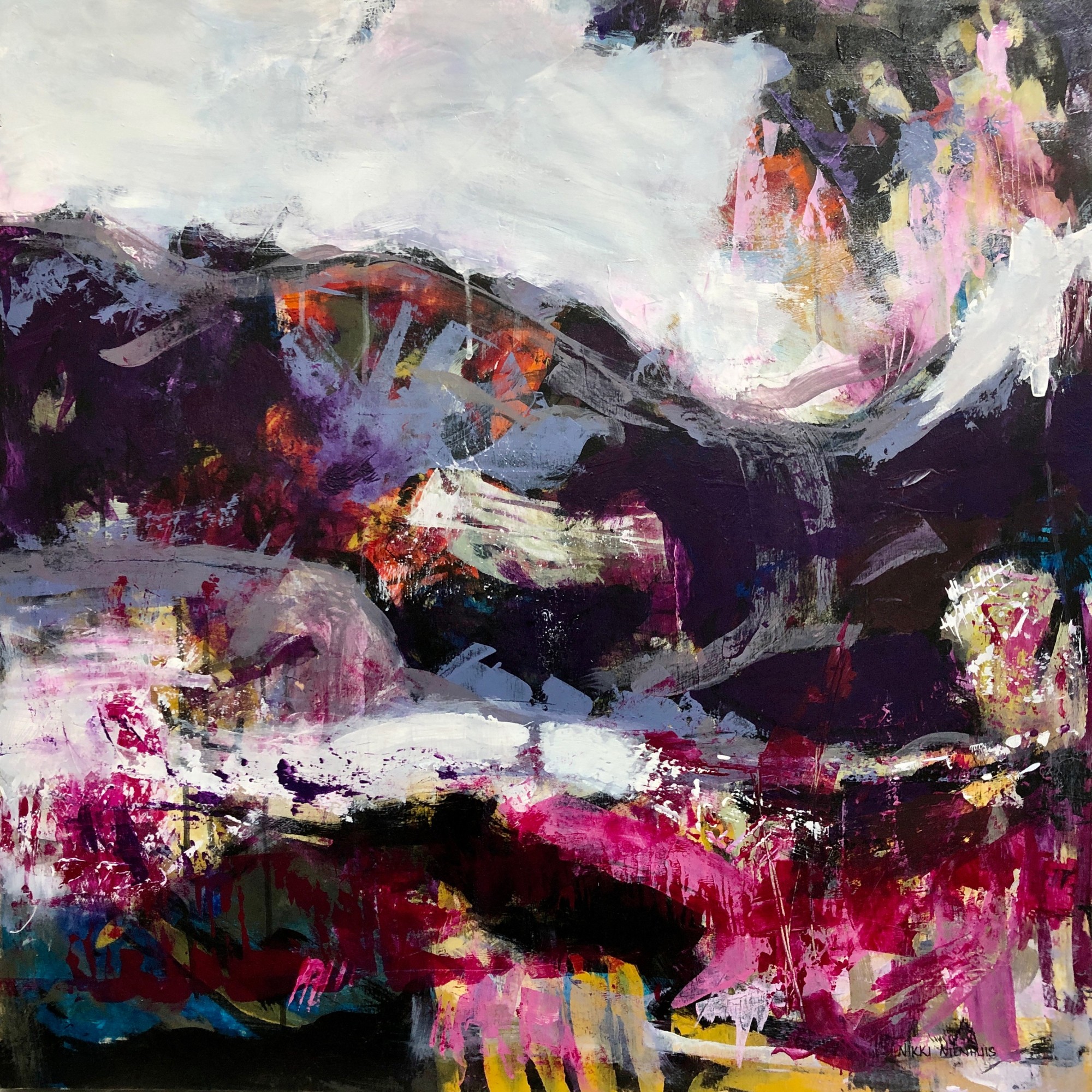This piece says, "how do I say thank you to the Universe" under the paint. Deep cradled birch panel with unpainted edges.