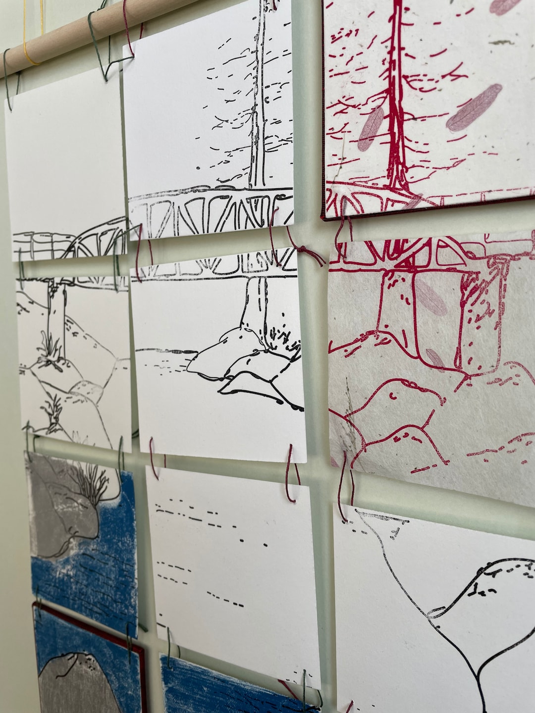 These are images of my childhood and visiting my grandparents who lived in Paradise, California—fishing at Paradise Lake and the Feather River, Whiskey Flats; trips to the Honeyrun Bridge. Although I do not live in Paradise, my aunt and cousins still do. Their lives and homes were devastated by the fire. These pieces are my reflection on childhood, family, and global warming.