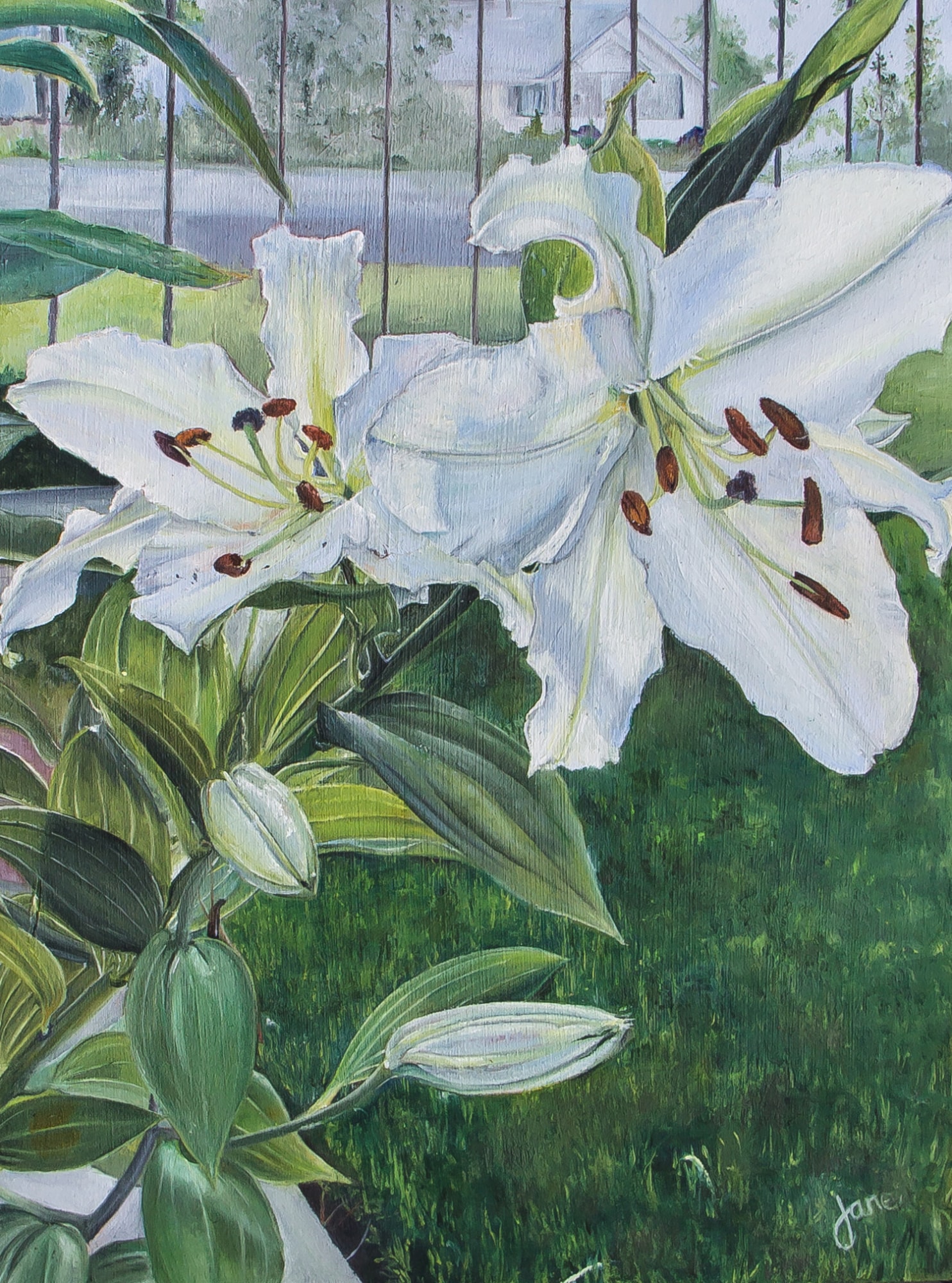 This started en Plein Aire, but was mostly done in my studio. These lilies were so incredible big and healthy! I was overcome...and had to paint them. My Grandma Lillywhite would love them!