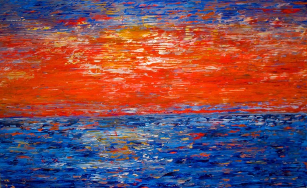 Sea has a rhythmic pulse that is unmatched by any part of nature and it isn't often that you see sunrise gold sea. The horizon seems stitched within golden lines. Occasional travelers walks past this river of pulsing light. When we see the sun shinning on the rocks across the beach, hearing the waves, distant cries of seagulls, the life that lives within and around, we should think how lucky that we are to see and hear it. The mesmeric beauty of it etched in my mind. These paintings are the echo of these memory. While expressing myself from a range of different perspectives within those parameters, I allow my compositions purposely and in greater depth and detail to communicate the results of my observations and explorations. Through many layers of paint with brushes and palette knife, they evolved by themselves completely from my imagination.