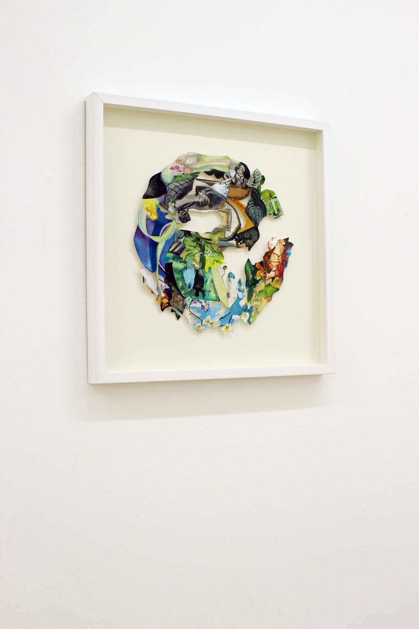 Working with the symbolism of a circle that protects, maintains, flows and connects, magazine imagery is held in a space of suspended animation, exploring notions of disposability and temporality within a unified whole. By exploding the external - an obsessive fragmentation of multiple perspectives drawn from the visual culture that surrounds us - I am simultaneously looking inward, drawing references from diverse philosophical sources and spiritual practices. Often seen as a symbol of protection, the circle template was taken from my dining table placemat, referencing intimacy and constraint within the domestic sphere. Emotionally accentuated during the pandemic, the home became a central ground for every aspect life, redefining a sense of time, relationship and priority.