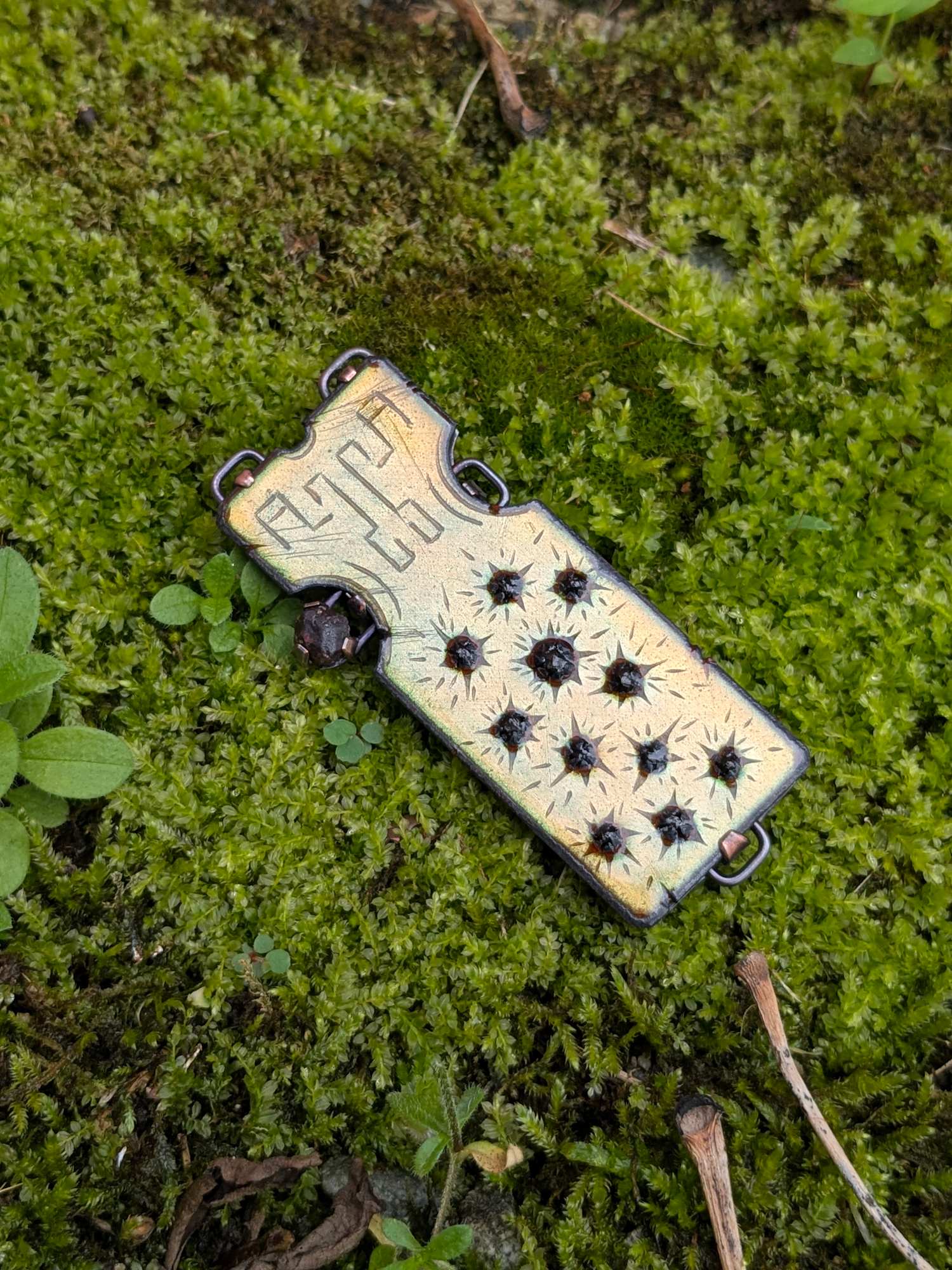 Copper, Brass, Enamel, Almandine Garnet, Piano Wire