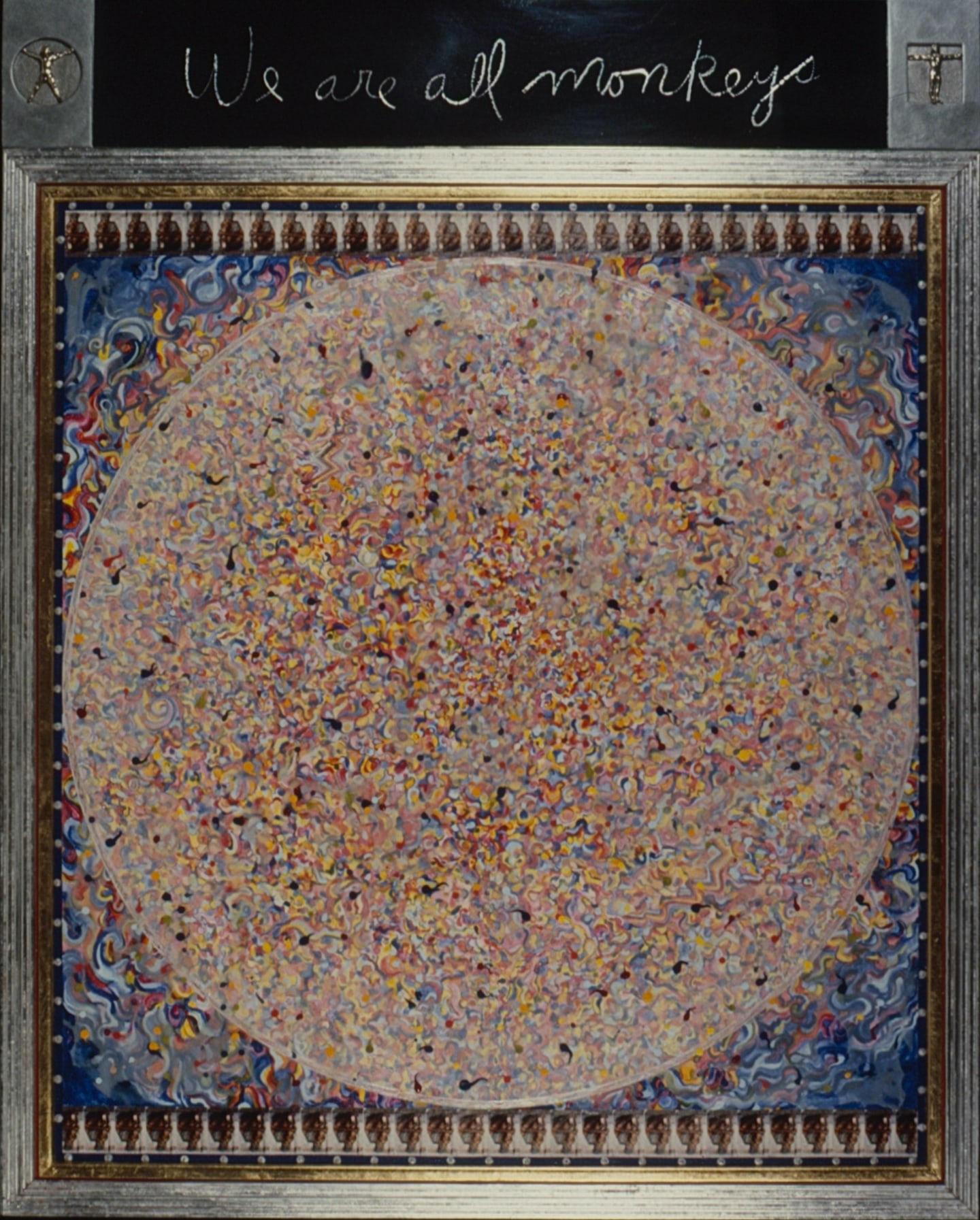 Plexiglass mirror, silver, wood, metallic leaf on canvas