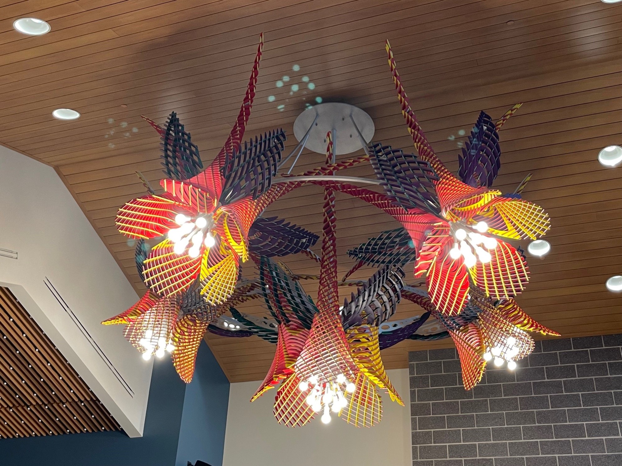 Illumination honors the Columbine, Colorado’s state flower, in combination with fireworks as an inspiration, and conveys to patrons of the theatre that they are about to experience something creative, engaging, and theatrical. Thousands of intricate pieces of aluminum and acrylics make up the 600-pound sculpture. The artist describes his vision of the design for Illumination: “I wanted to create a sense of celebration in the Parsons Theatre lobby, a celebration of life, creativity, and a blossoming of ideas."