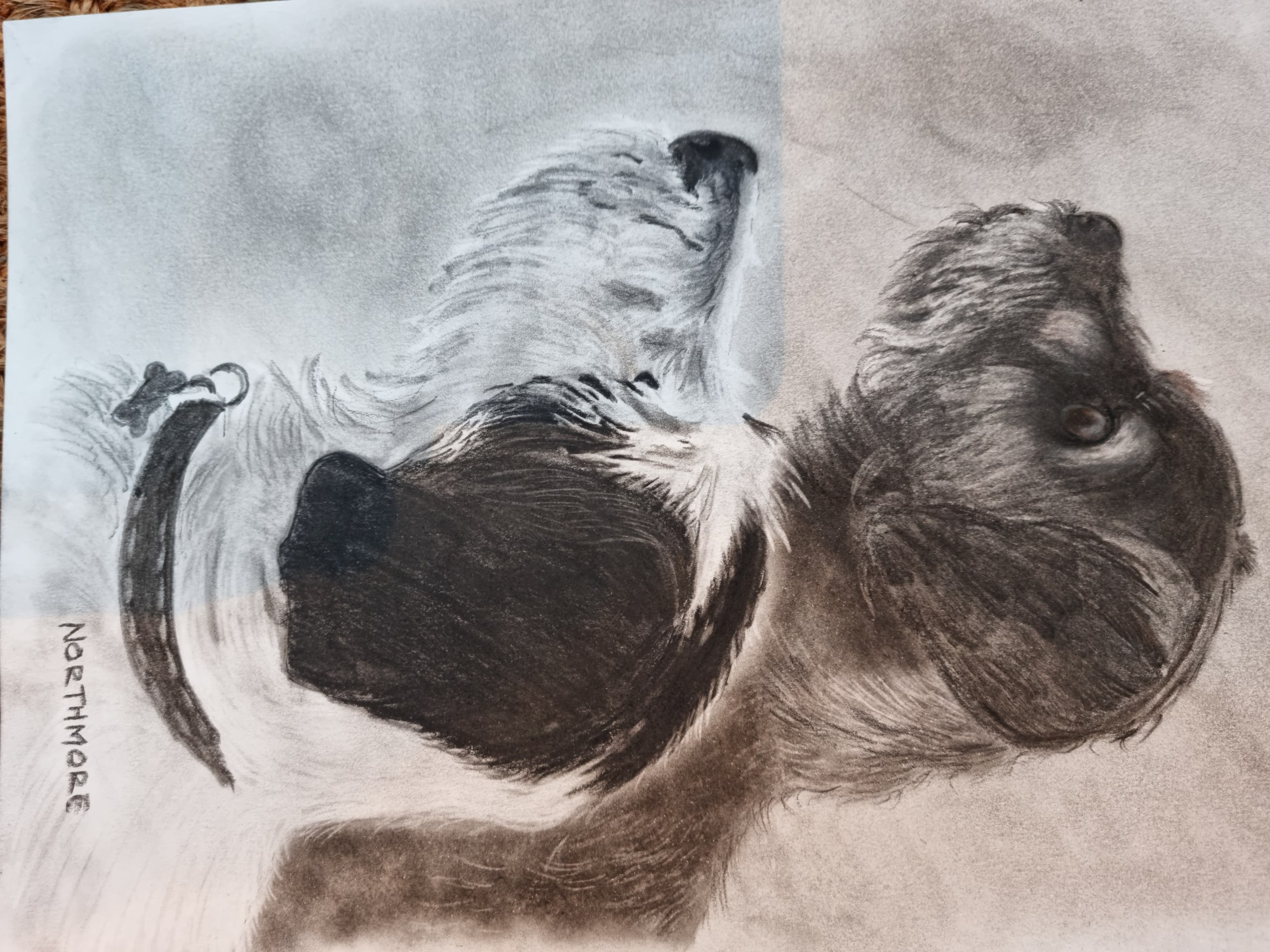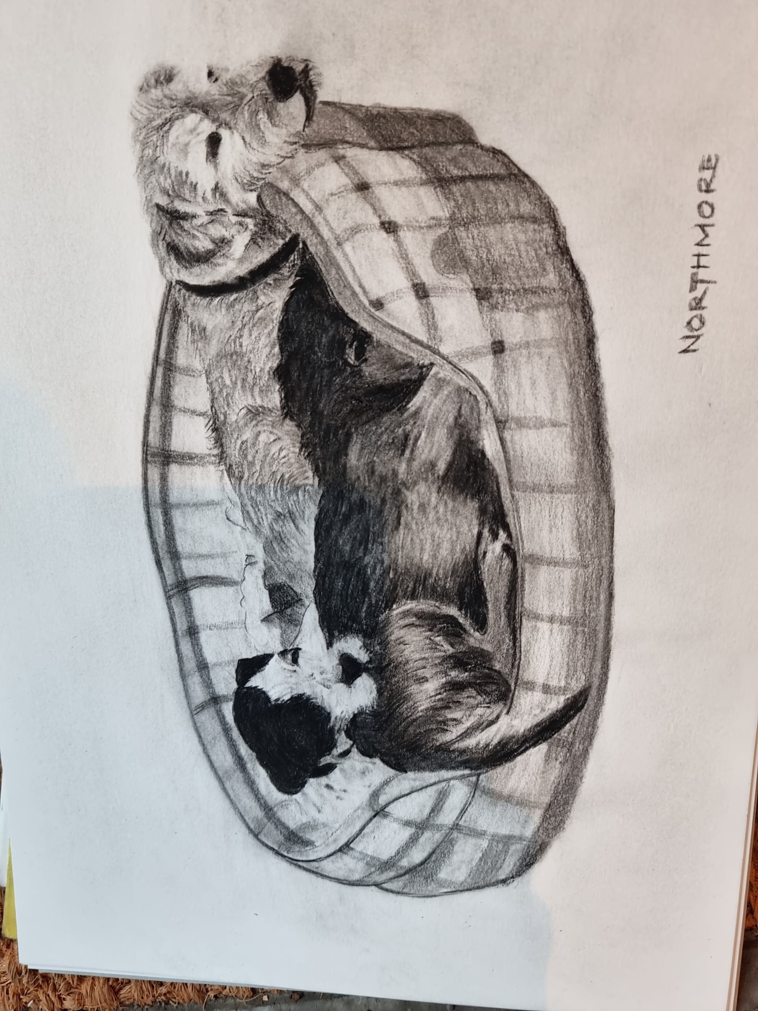 4 Drawings of pets carbon pencil and charcoal on A4 paper