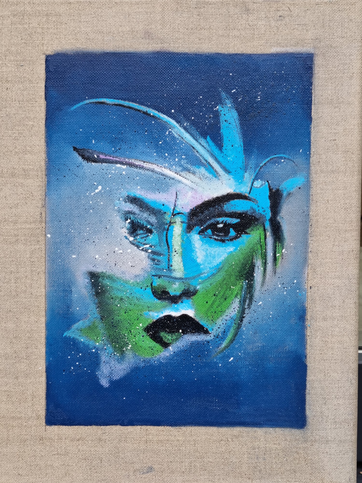 Abstract oil painting on natural linen canvas
