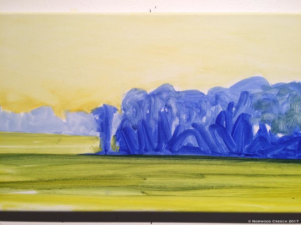 Blue Trees over Rice, Rivervale Pocket, Rivervale, Poinsett County, Arkansas, painted on location