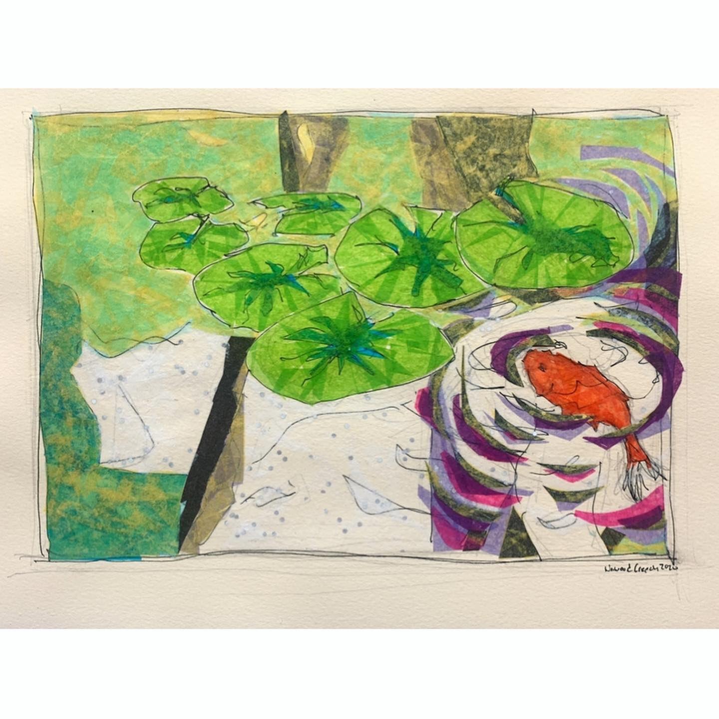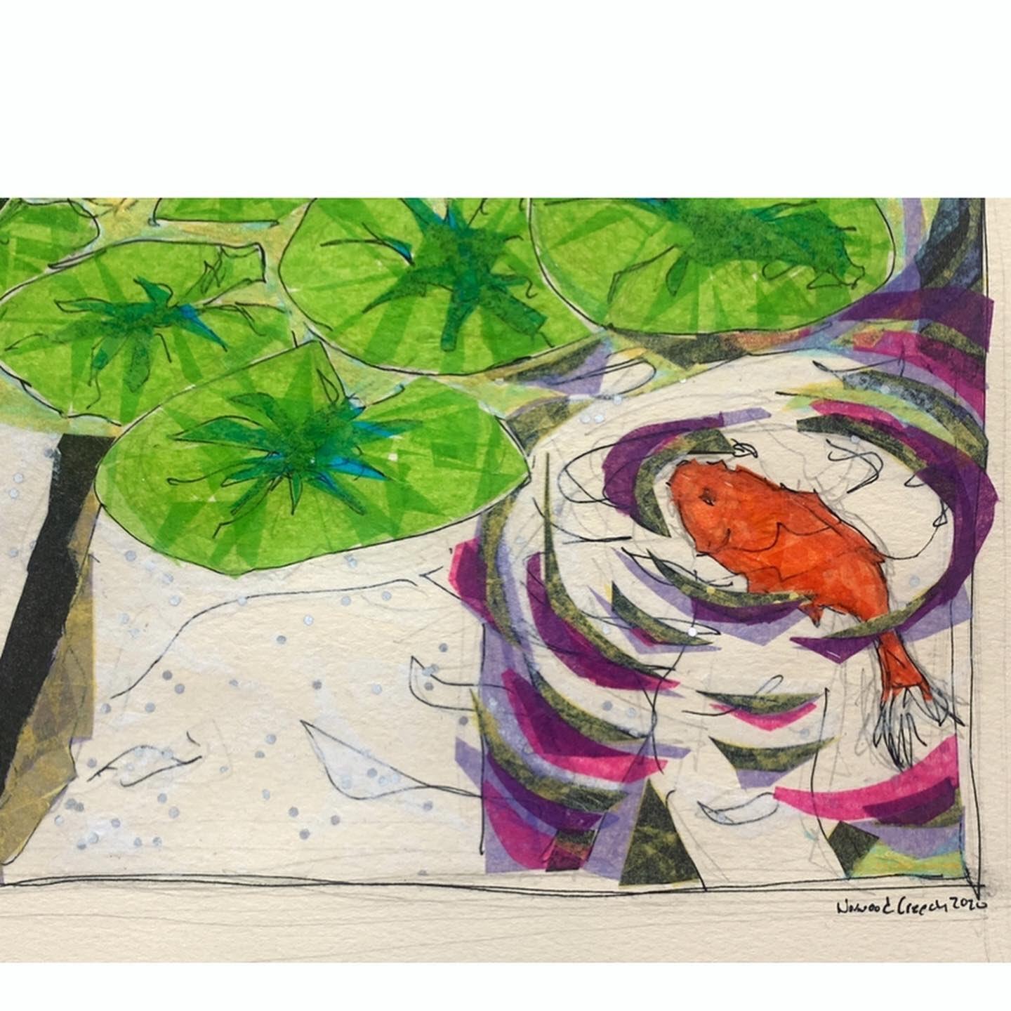pen/ink, graphite, tissue paper, metallic tissue paper, glitter tissue paper, pva glue, on buff Arches paper