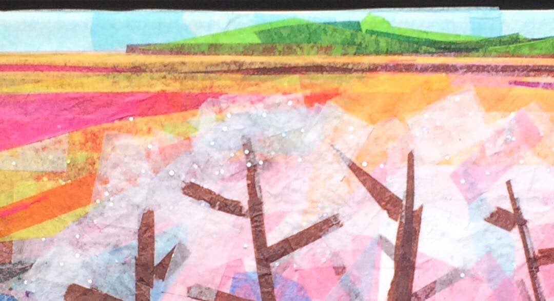 tissue paper, metallic tissue paper, glitter tissue paper, glue on Rives BFK mounted on stretched linen canvas