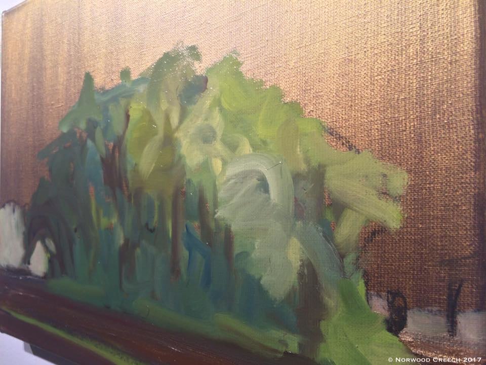 McClellan Indian Mound, Poinsett County, Arkansas, Painted on location, charcoal and oil on metallic gesso ground on linen, 12" x 16" Norwood Creech 4/2017