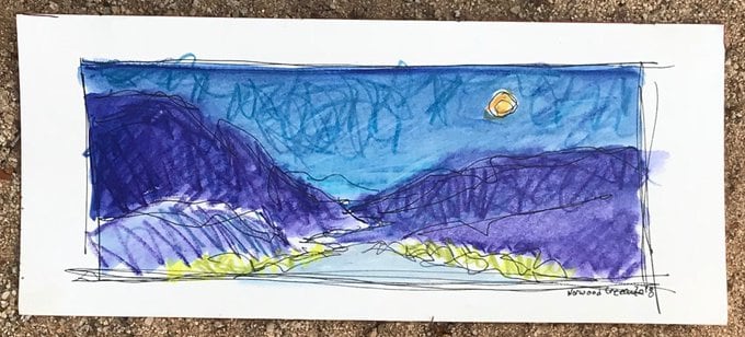 Moon Over Windy Gap, Bartlett Mountains, Joshua Tree, California, painted on location